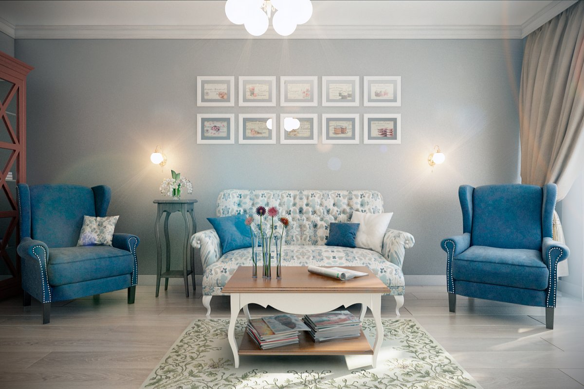 36. Гостиная голубой Прованс