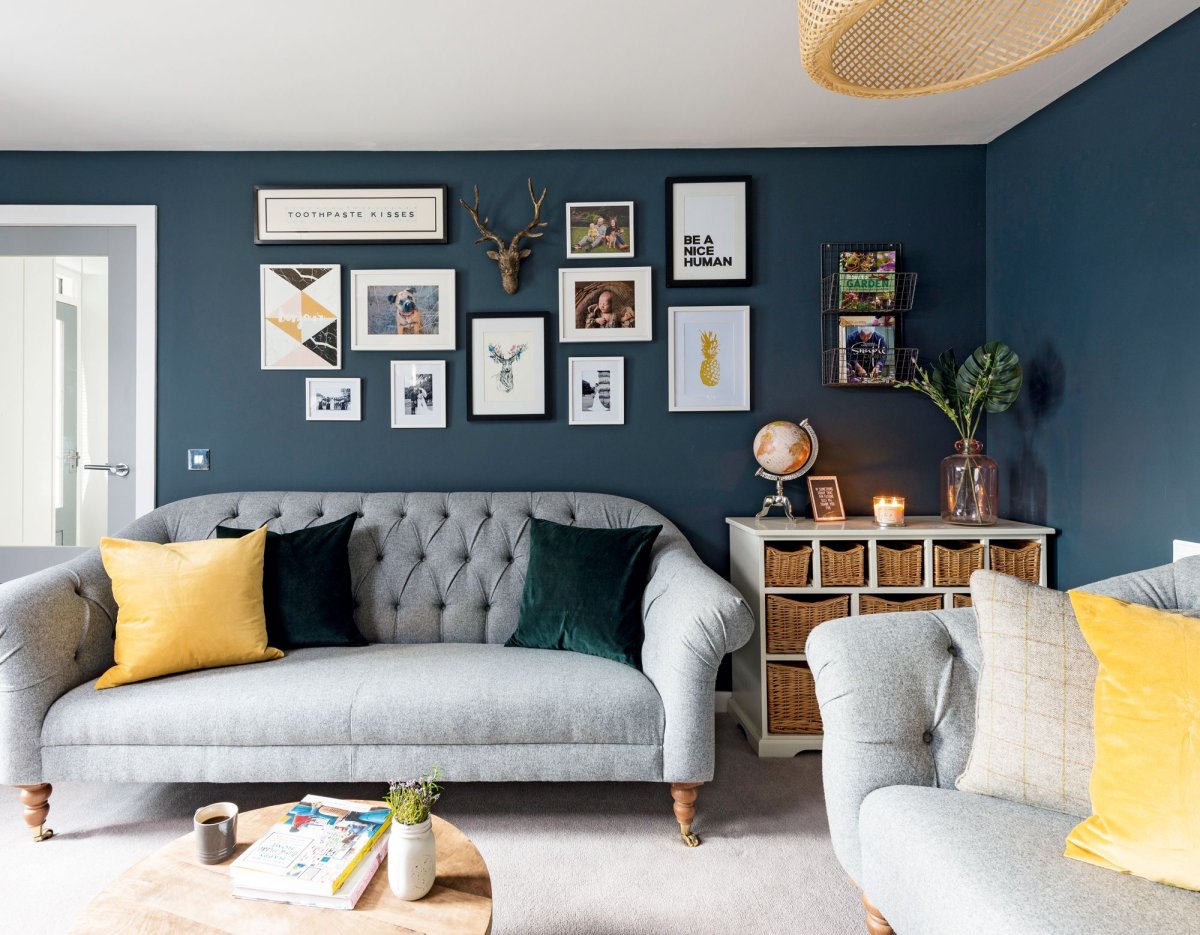 6. Серые обои синий диван