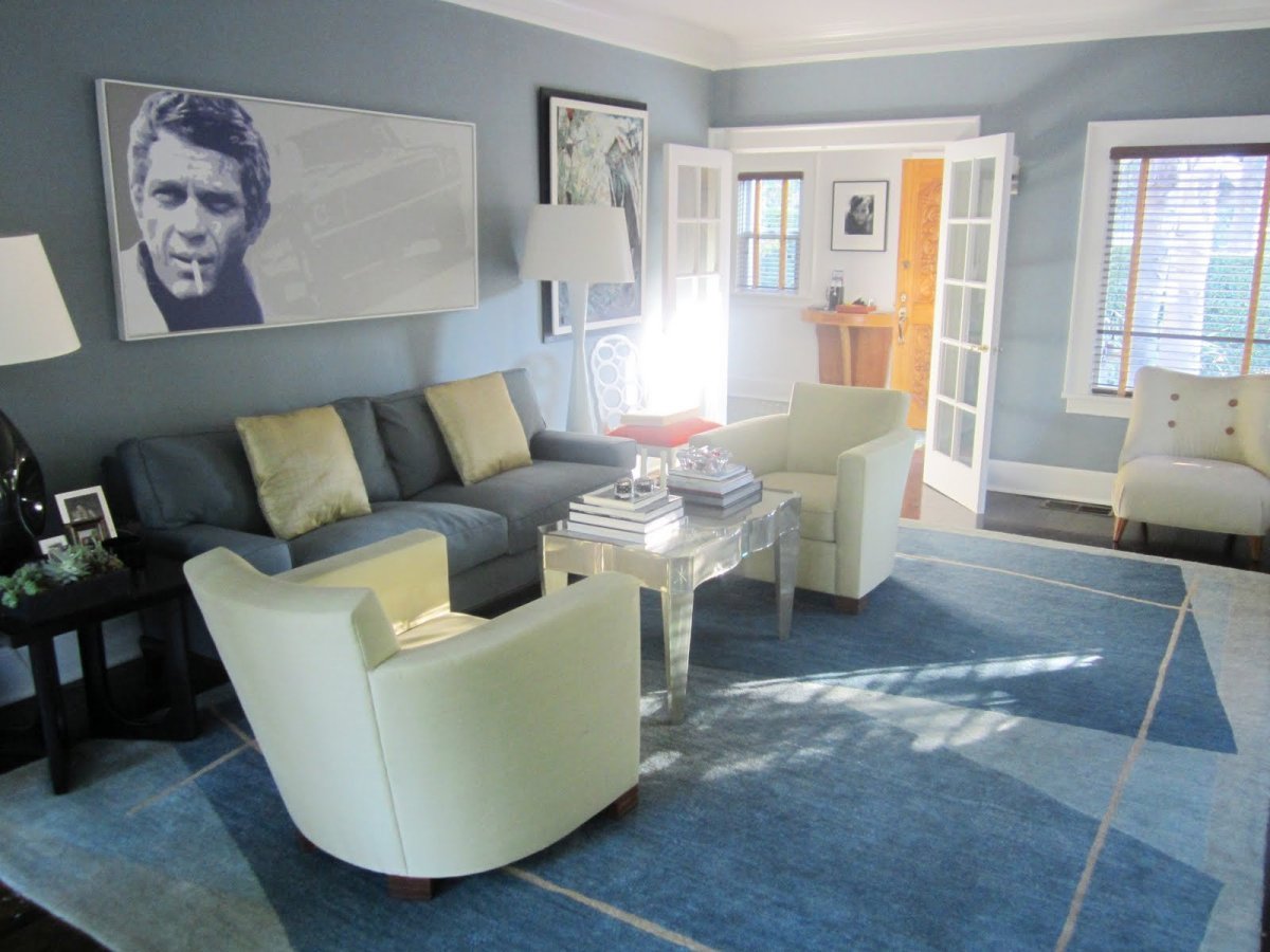 Фото: Гостиная с голубыми стенами