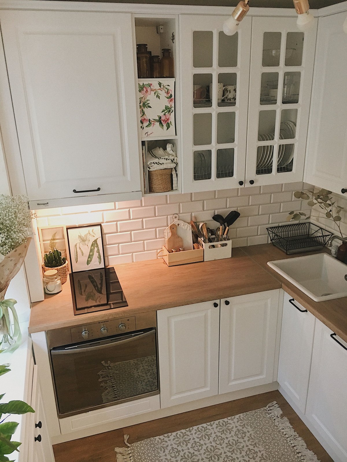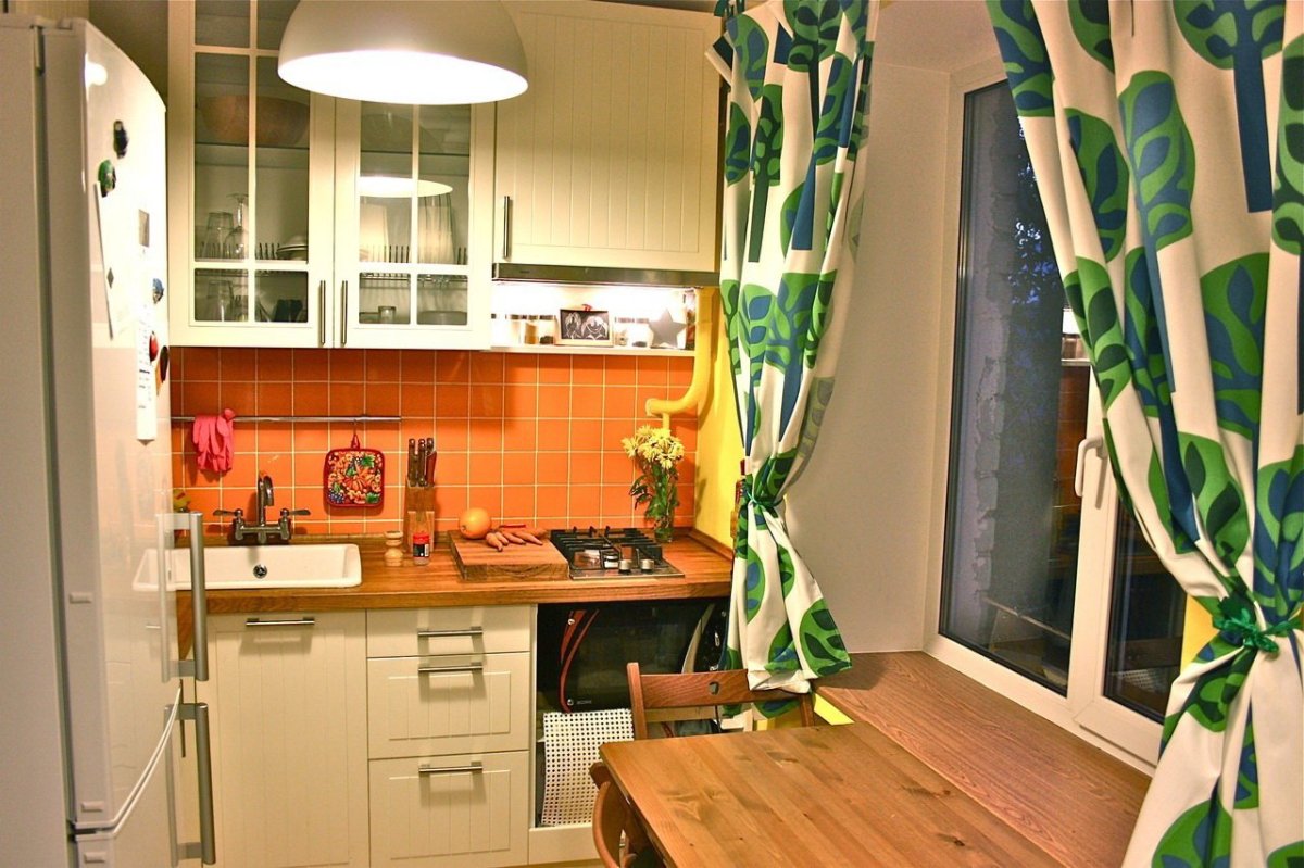 12. Кухня в стиле Прованс в малогабаритной кухне деревянный дом