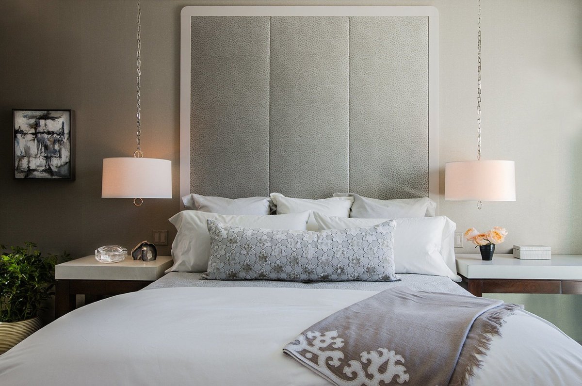 69. Подвесные светильники в спальне над кроватью
