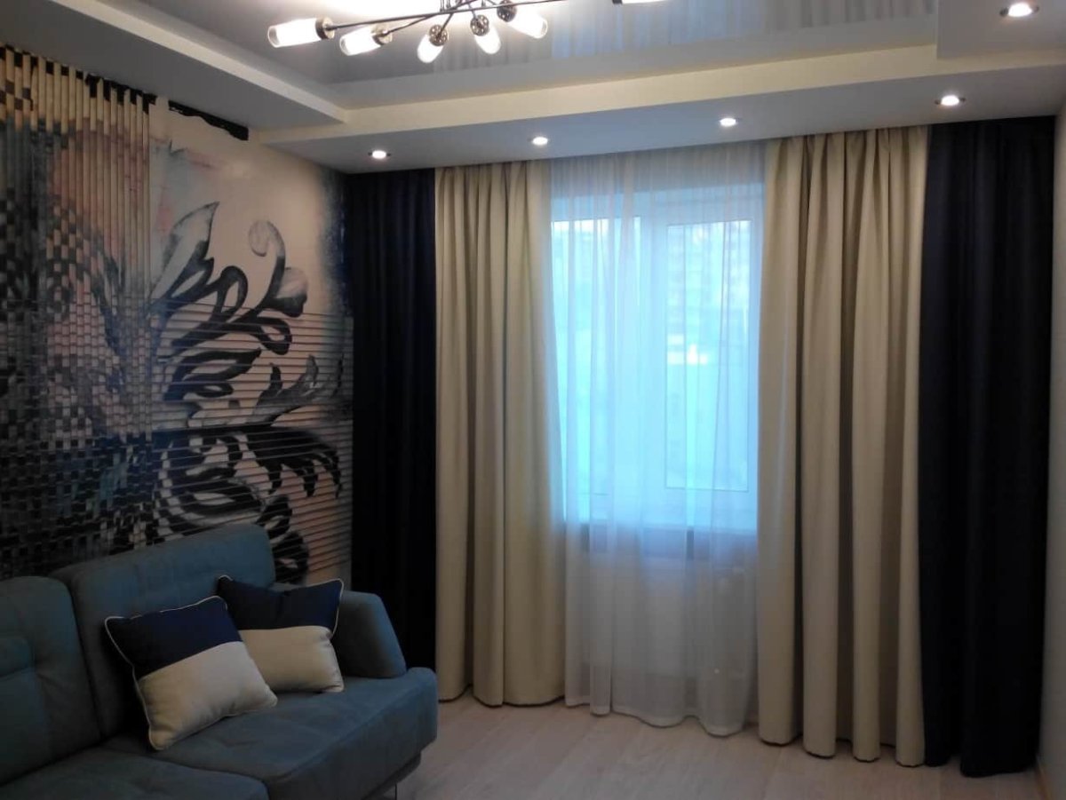 17. Темная тюль и светлые шторы