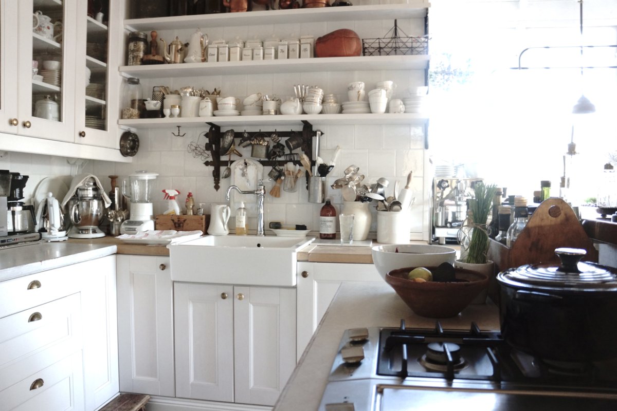 13. Белая кухня с открытыми полками