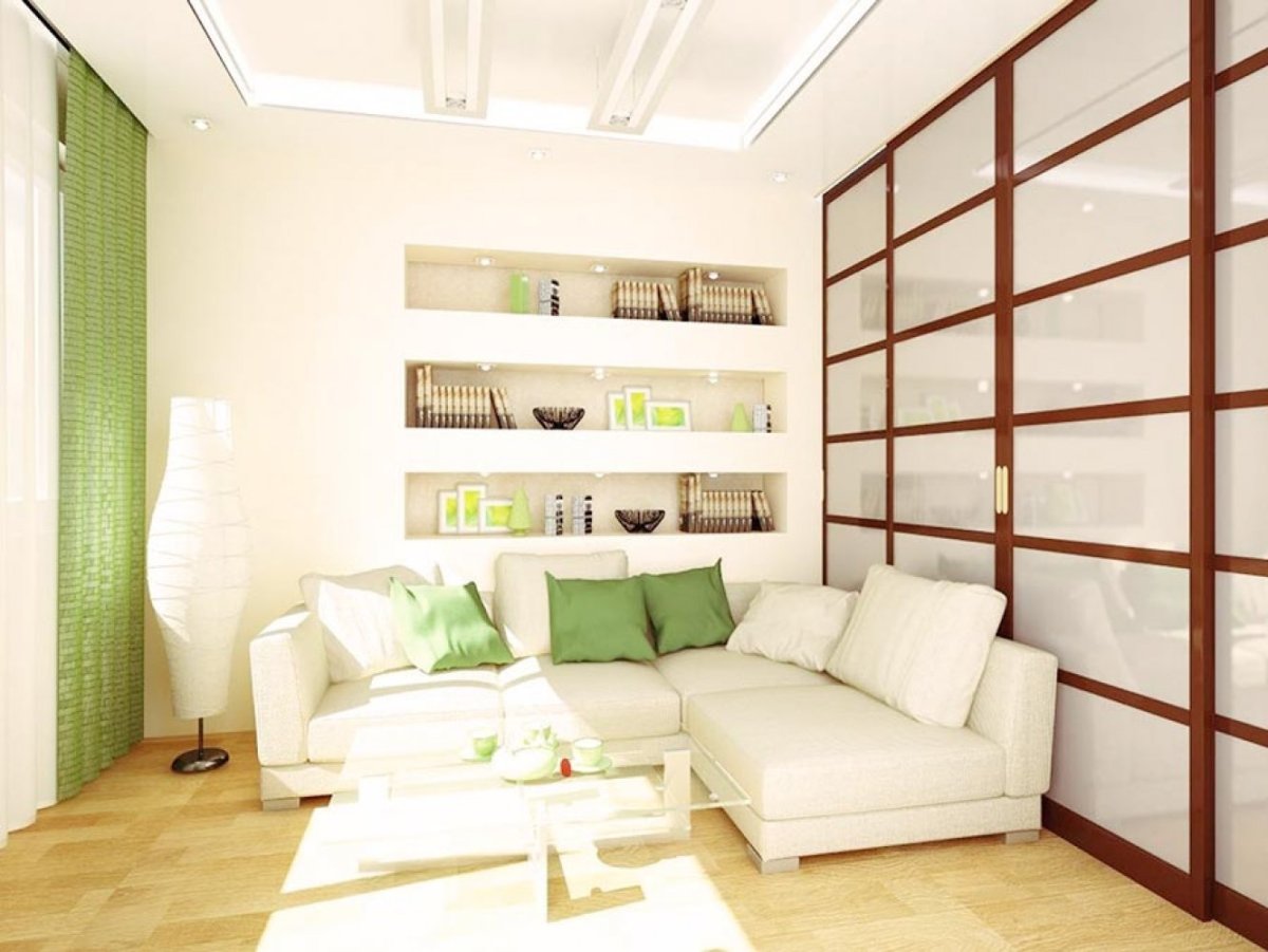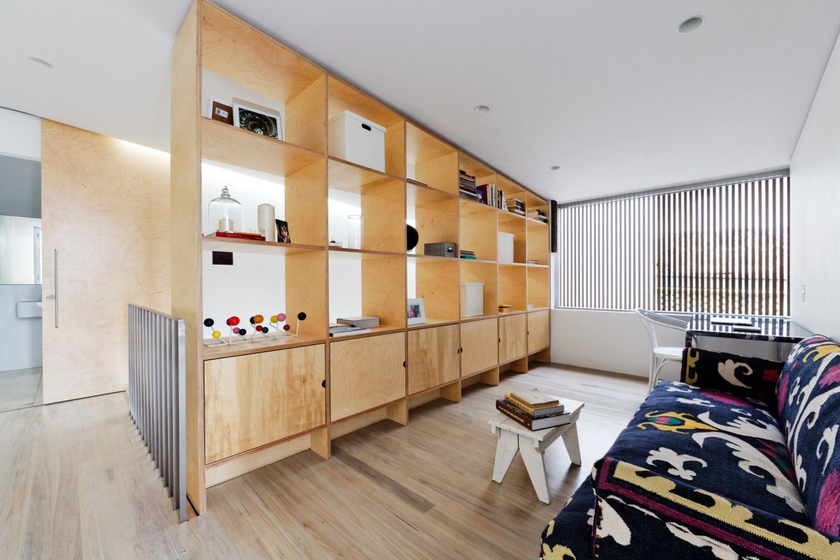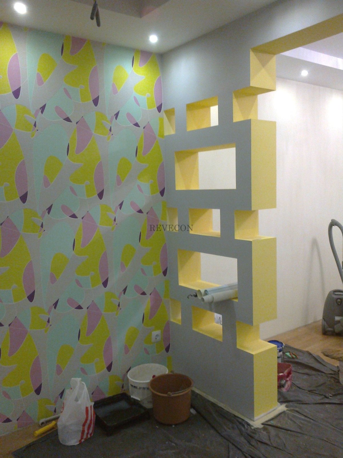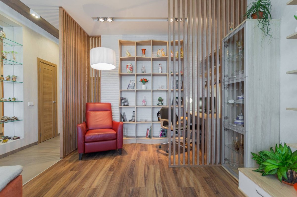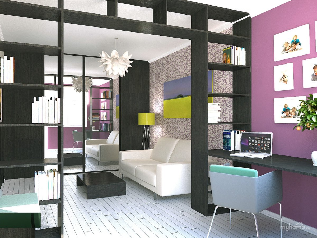 37. Стеллаж-перегородка для зонирования комнаты из гипсокартона