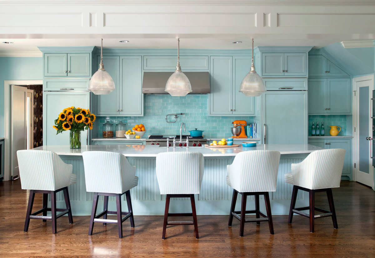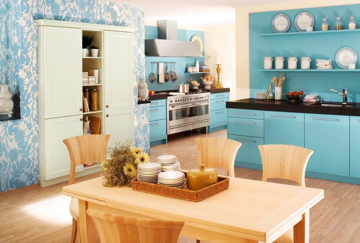 12. Бирюзовые стены в интерьере кухни