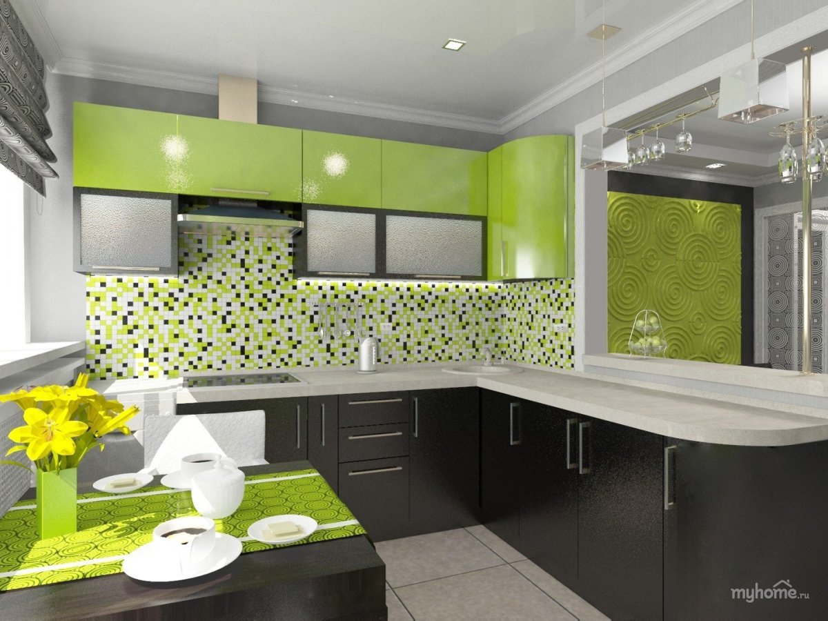 47. Зелёная кухня дизайн 7 кв.м