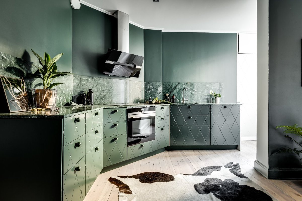 12. Изумрудная кухня в интерьере