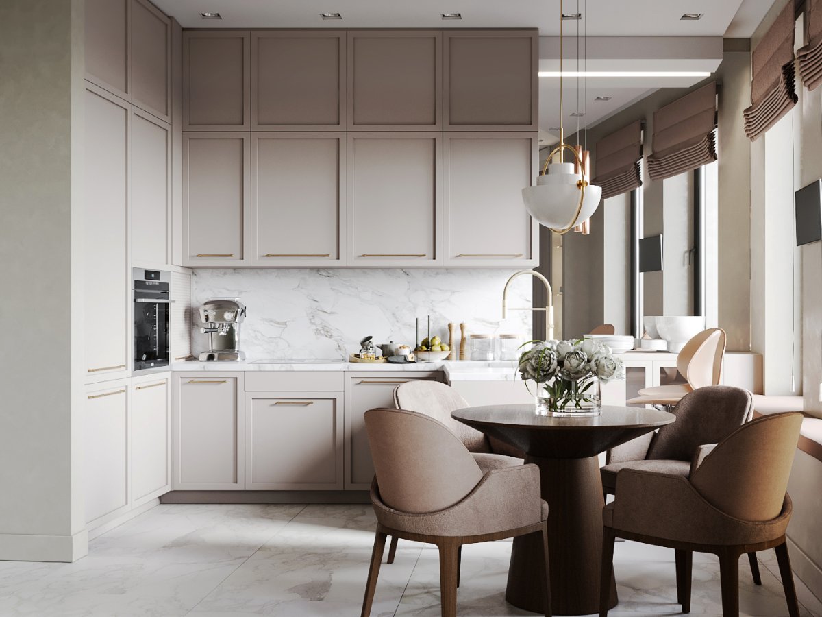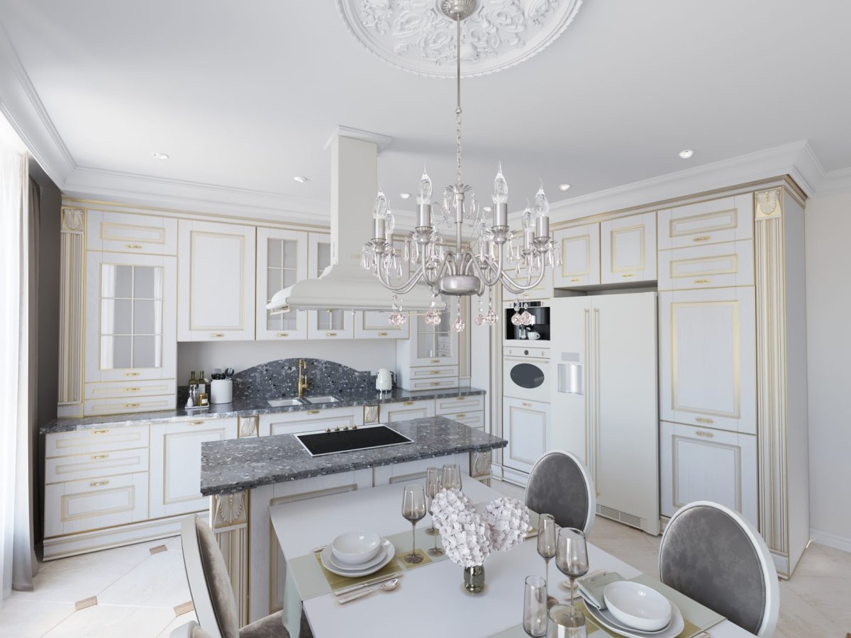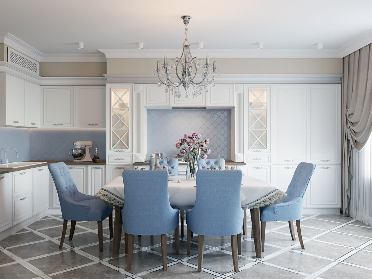 23. Интерьер кухни в классическом стиле в светлых тонах
