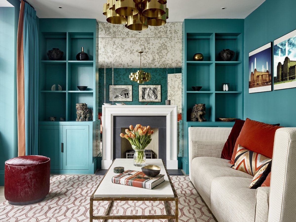 Фото: Сара Ричардсон бирюзовый интерьер гостинная
