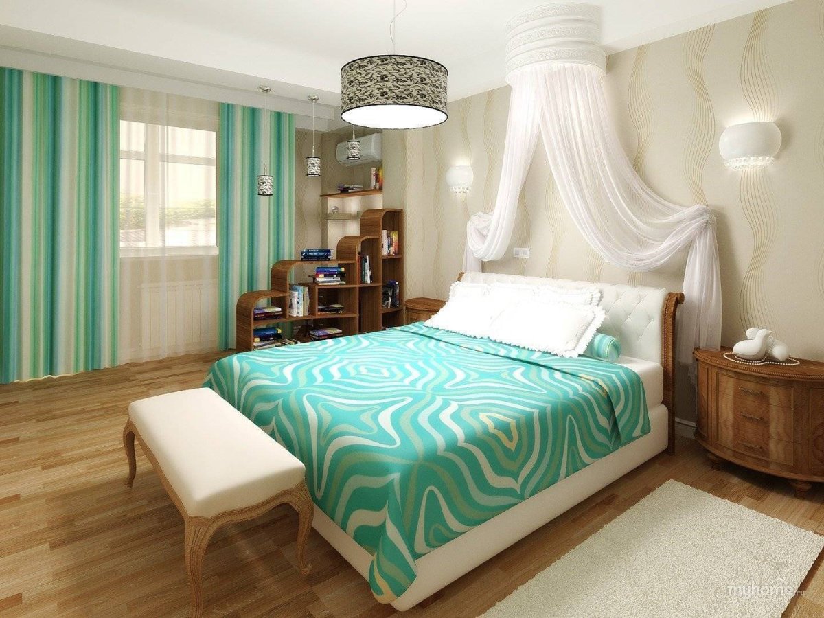 Фото: Спальня в бежево бирюзовых тонах