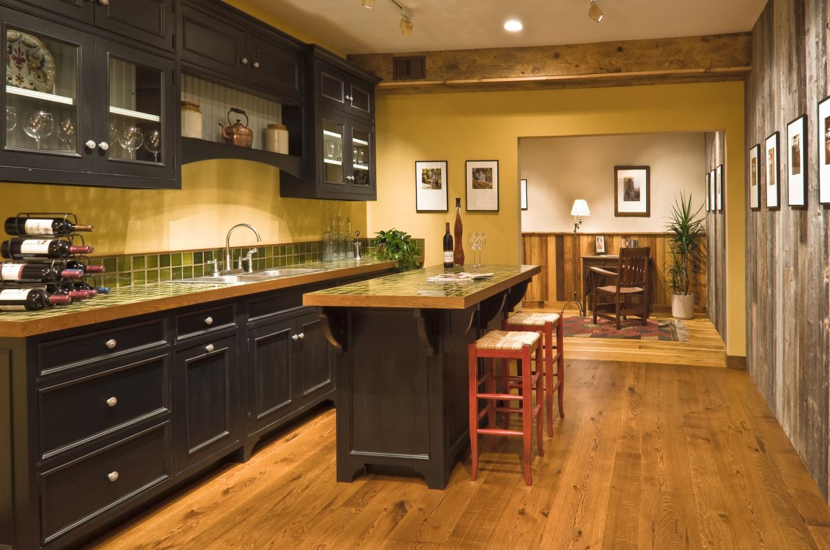 63. Кухня из темного дерева в интерьере