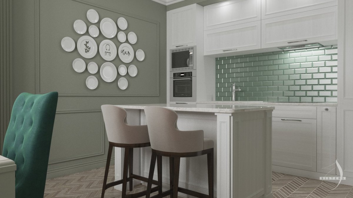 30. Зеленые стены белая мебель