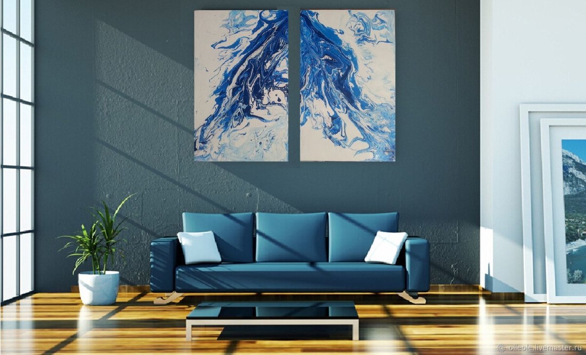 31. Картины диптих в синем цвете для офиса