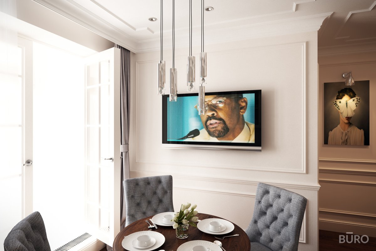 56. Размещение телевизора в кухне столовой