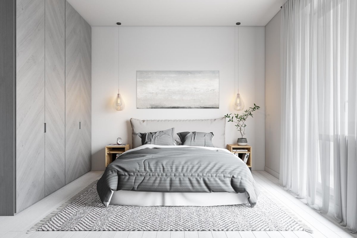 53. Спальня в серо белых тонах