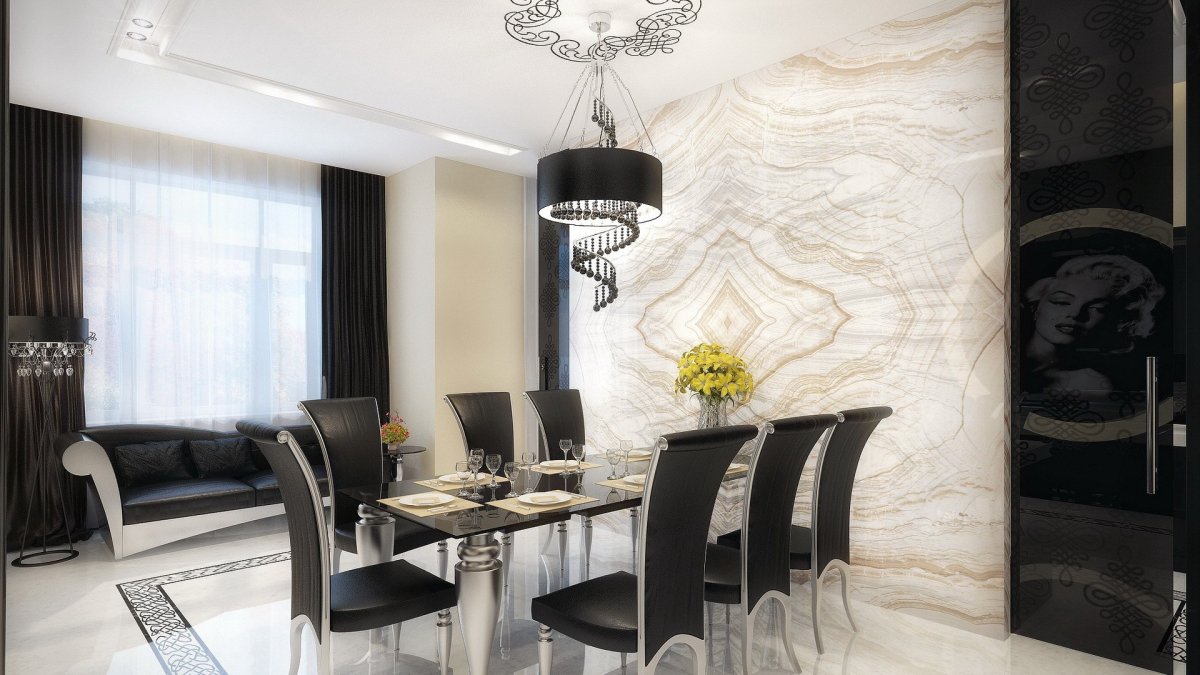 10. Обои мрамор в кухне гостиной