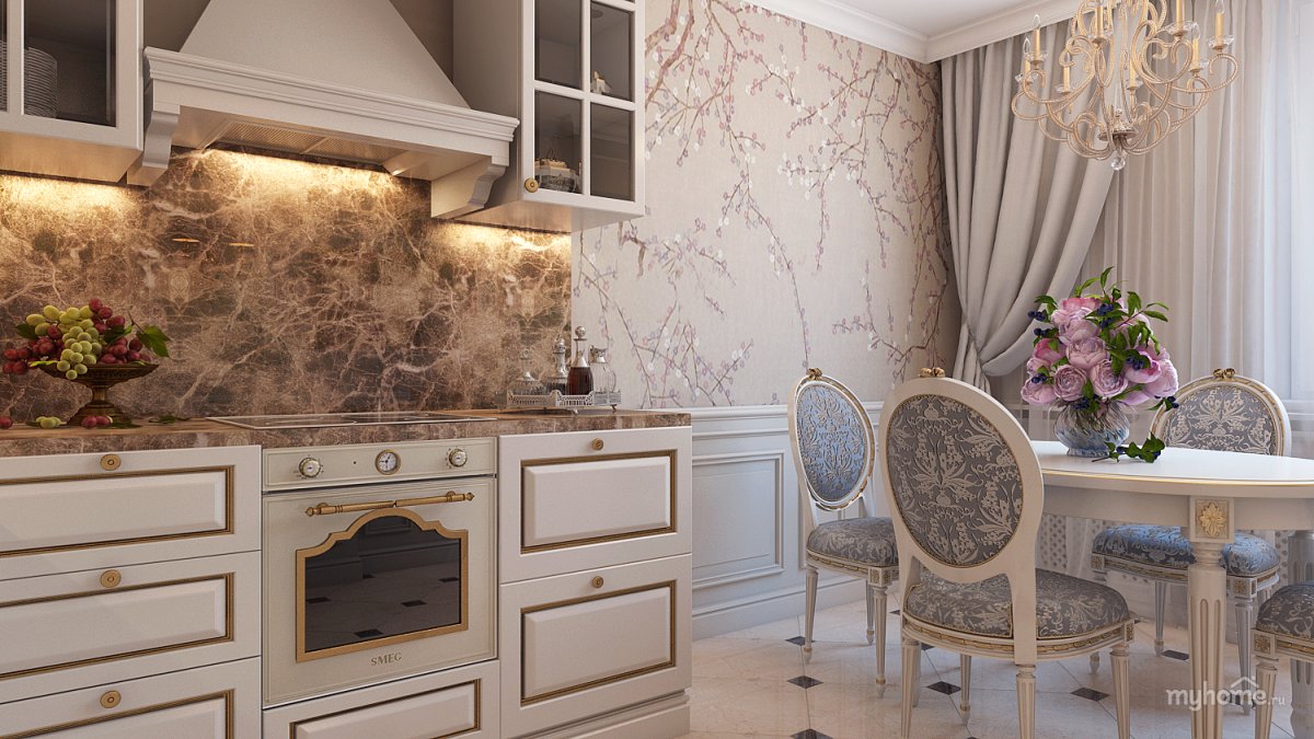 56. Фреска в стиле Неоклассика в интерьере кухни