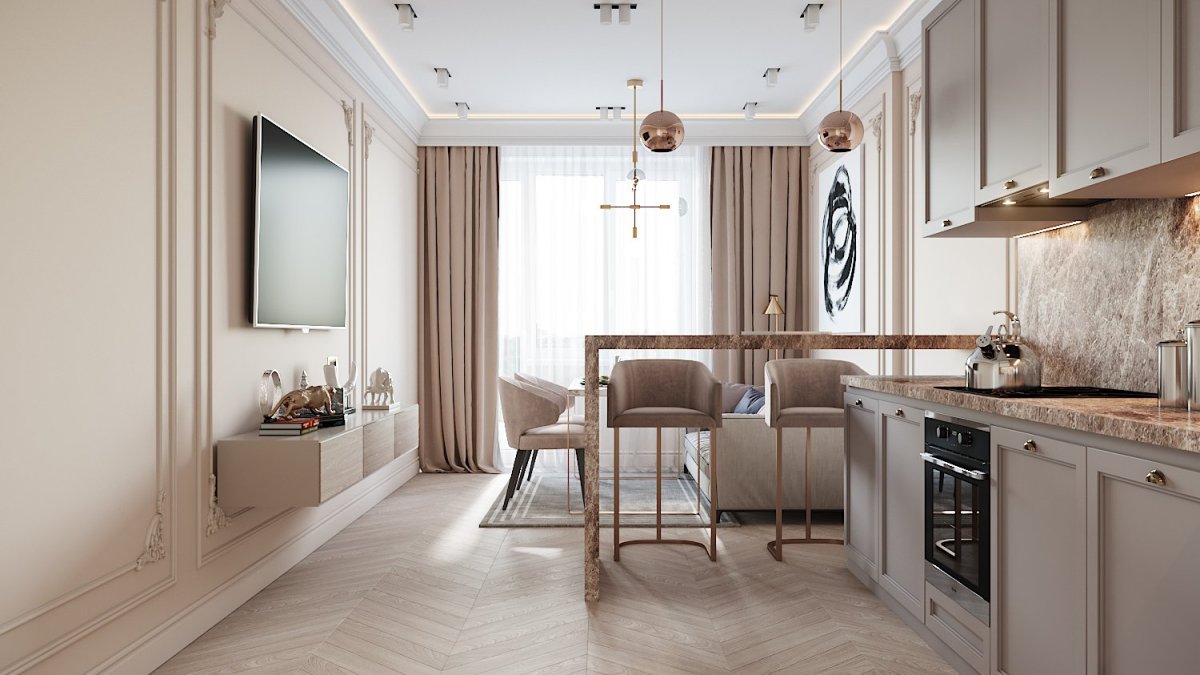6. Кухня-гостиная Неоклассика 20 кв метров
