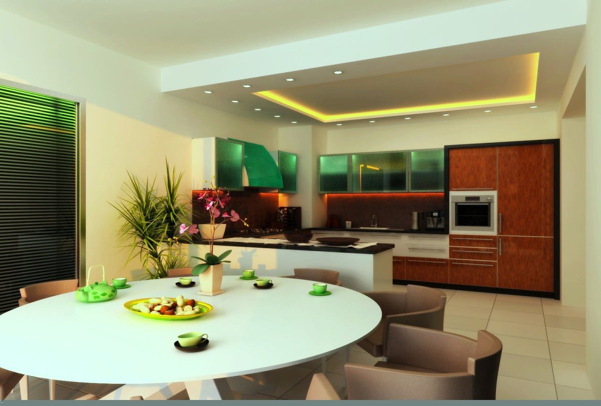 26. Цветовые сочетания в интерьере кухни с деревянной кухней