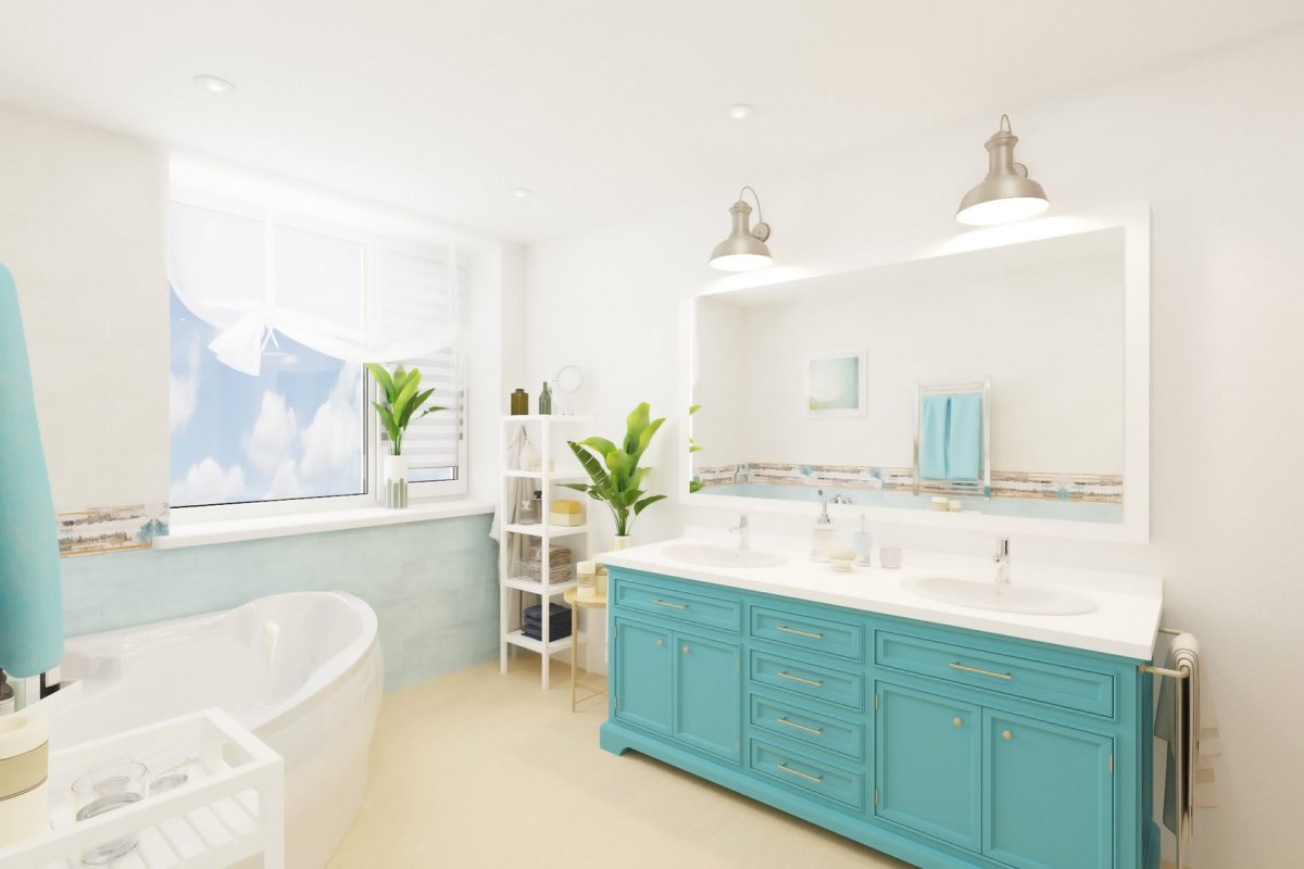 48. Ванная в бирюзовых и голубых тонах