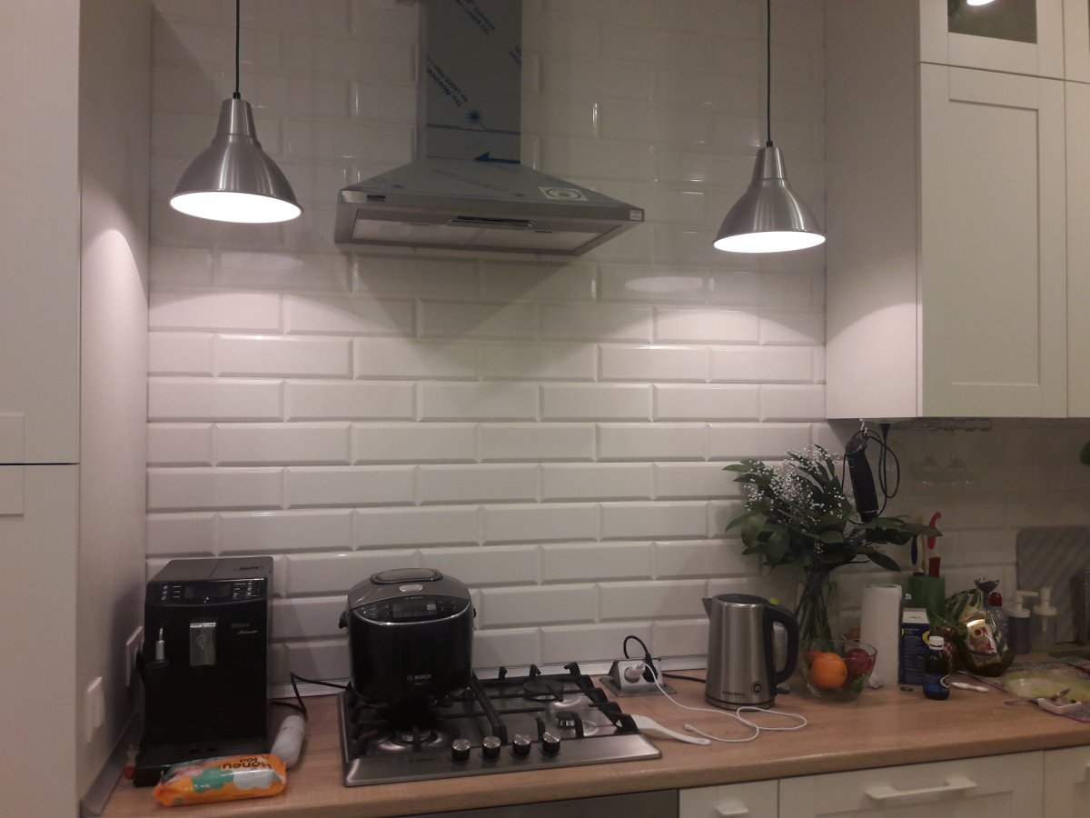 26. Плитка кабанчик на фартук кухни с черной затиркой