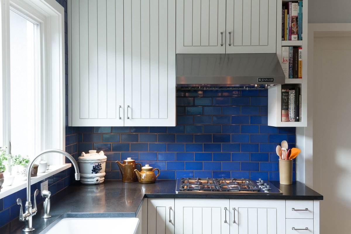 62. Кухонный фартук из плитки кабанчик под вытяжку