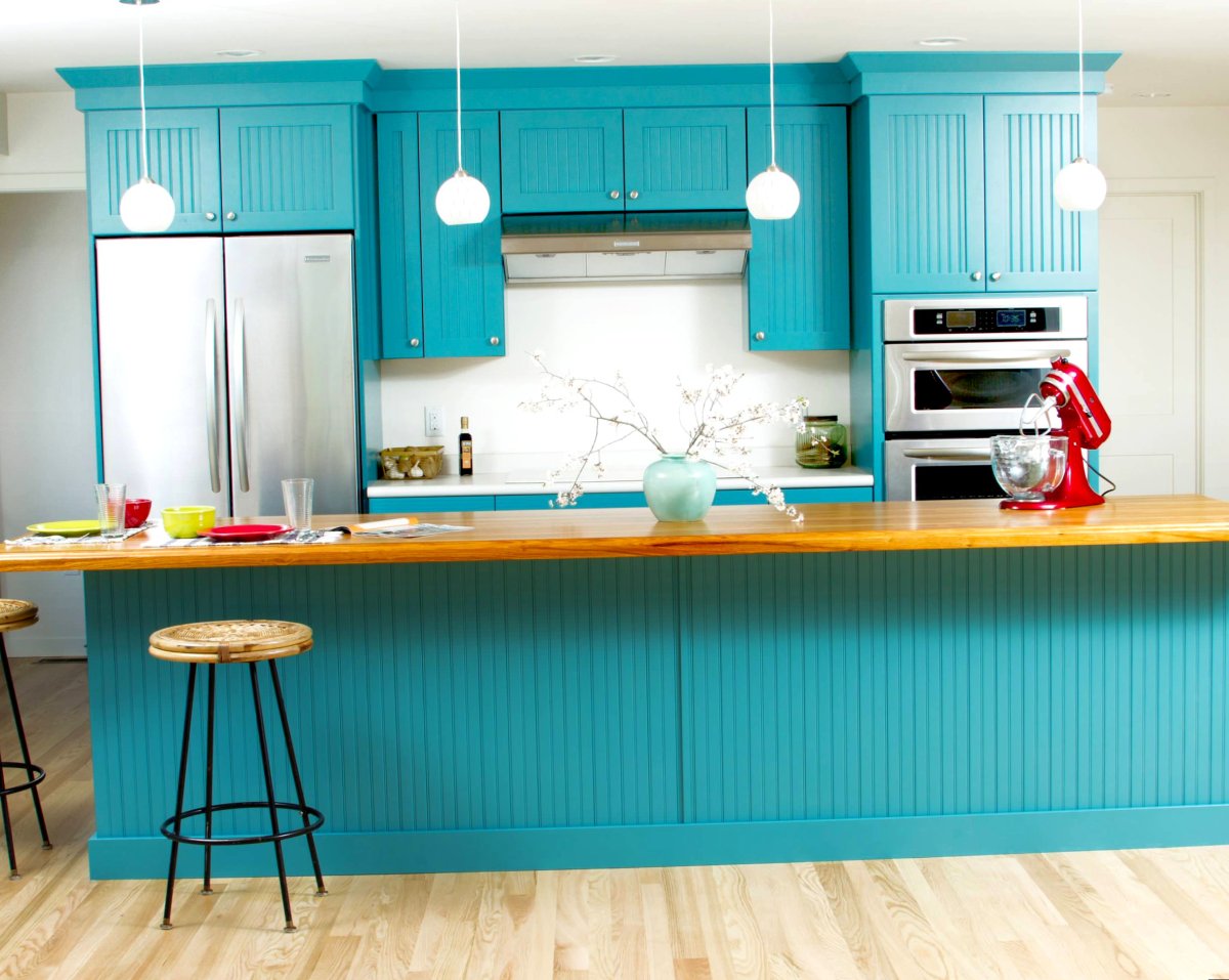 62. Кухня в бирюзовом цвете