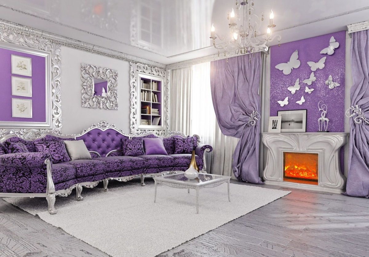 28. Гостиная в фиолетовых тонах Эстетика