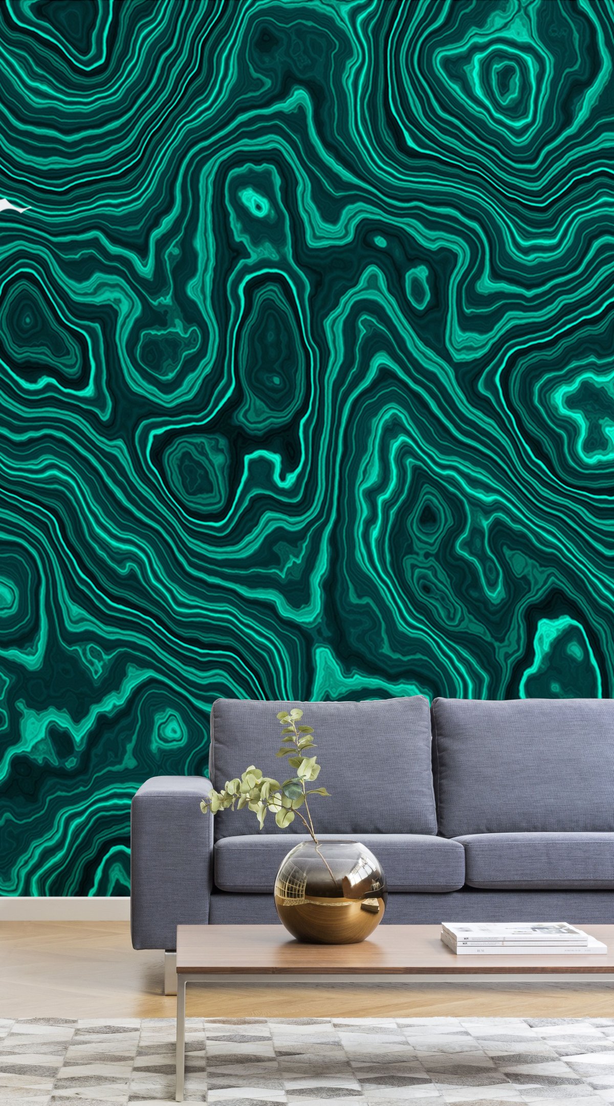 68. Обои под малахит в интерьере