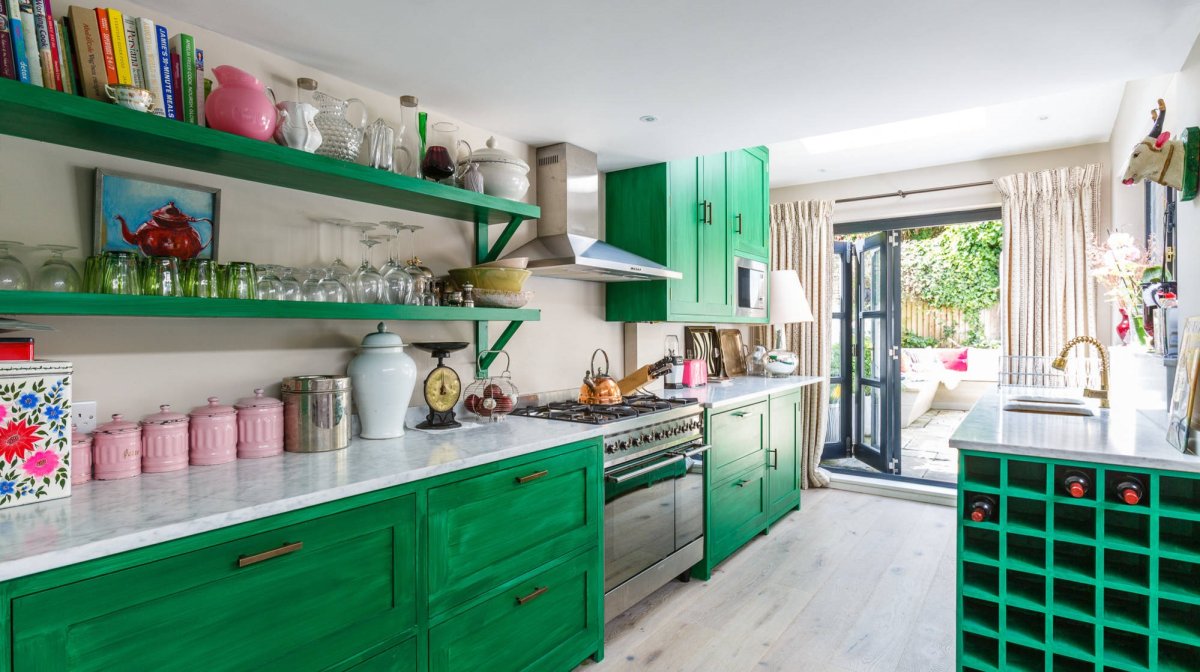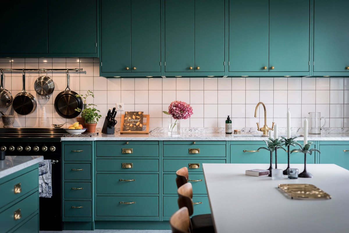 Фото: Кухни изумрудного цвета в сочетании с белым
