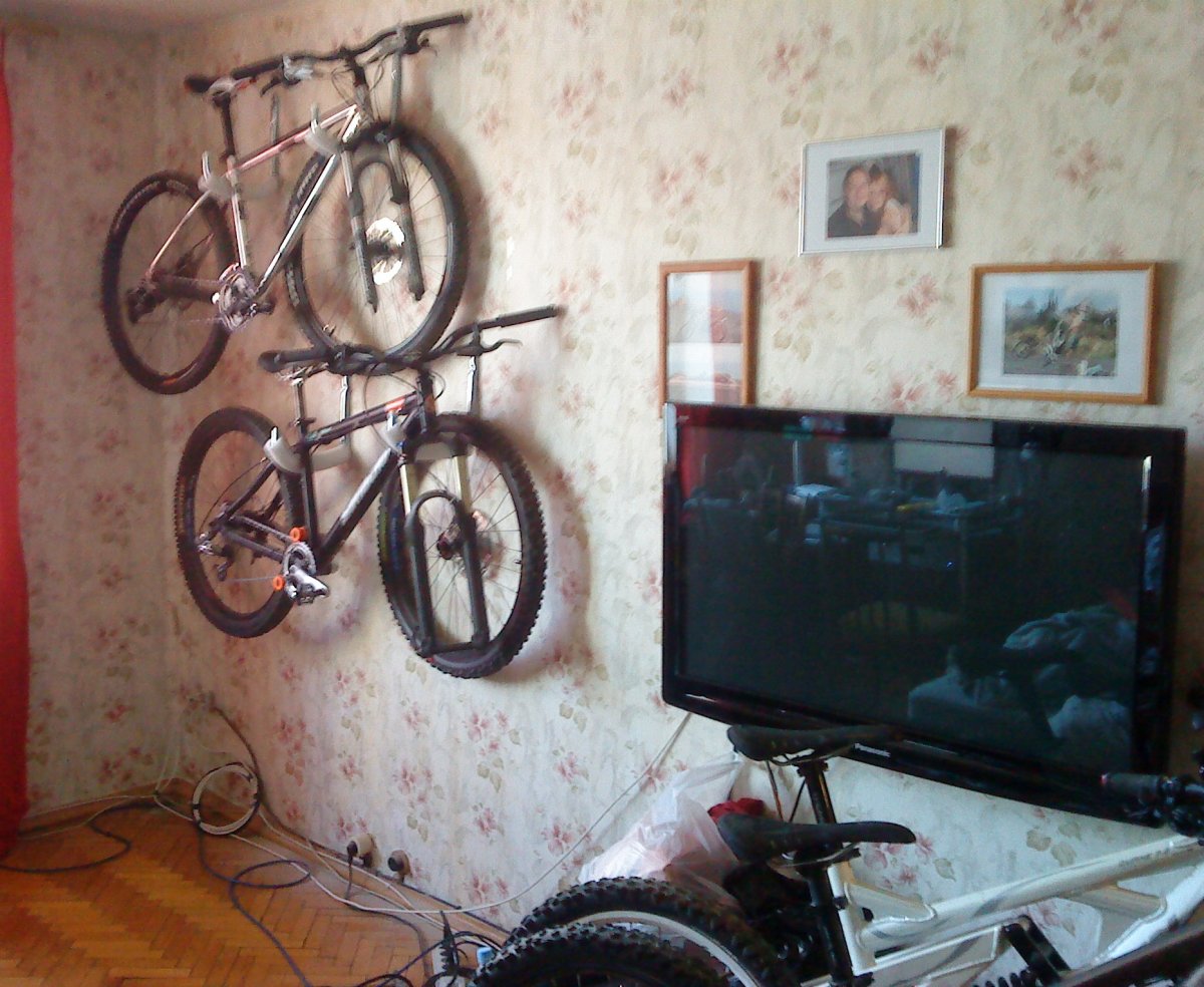 Фото: Велосипед на стене в квартире