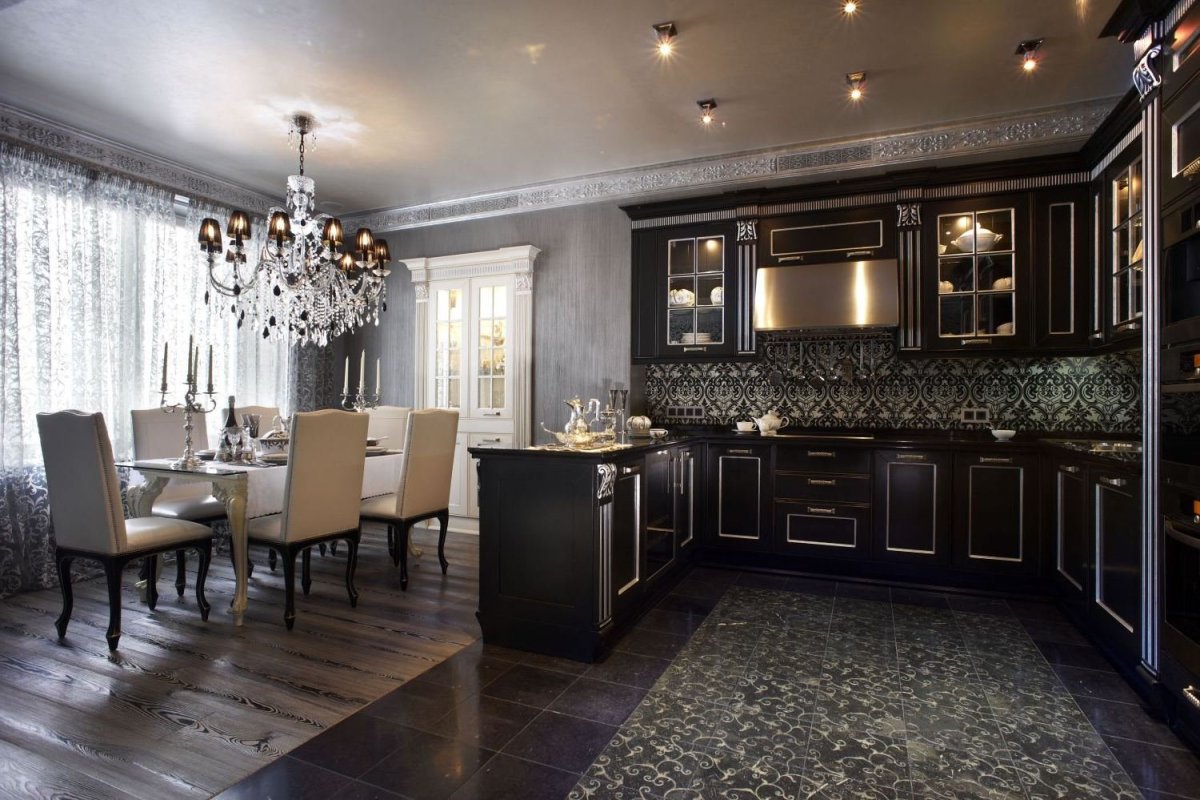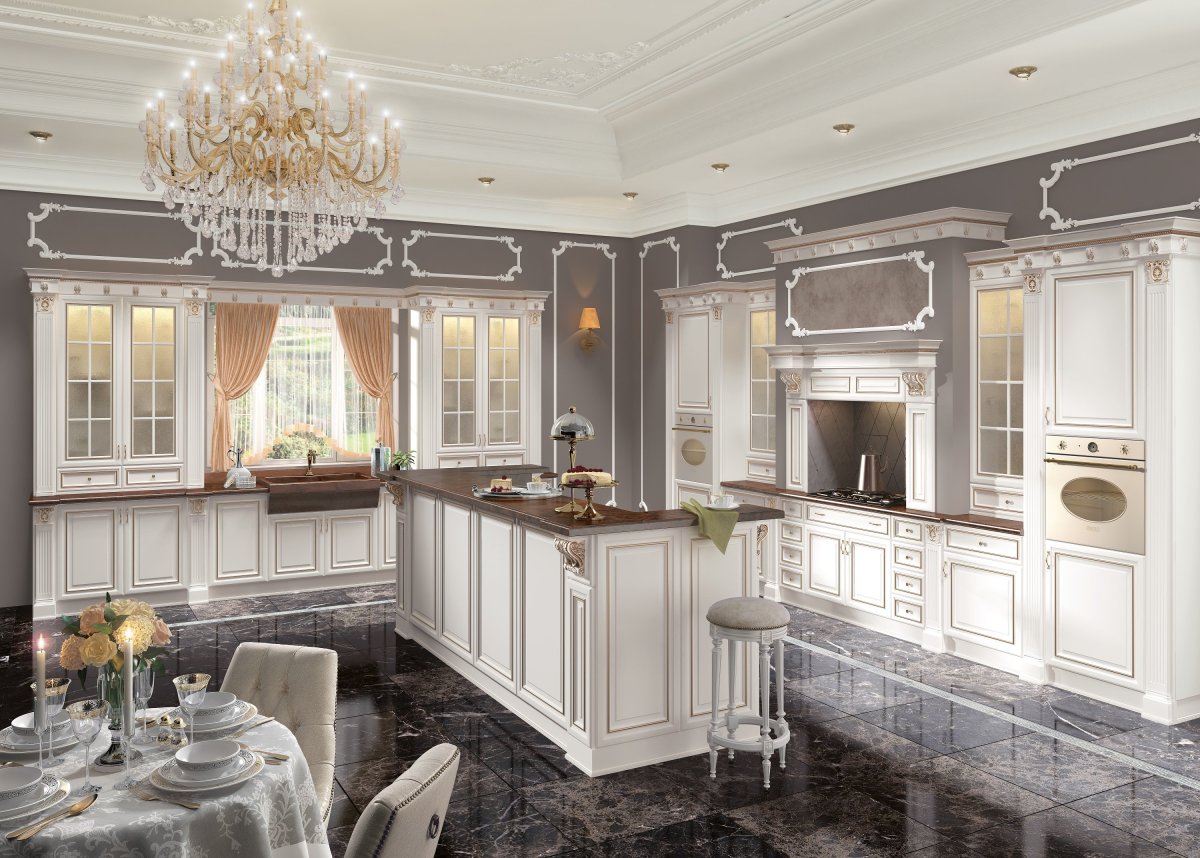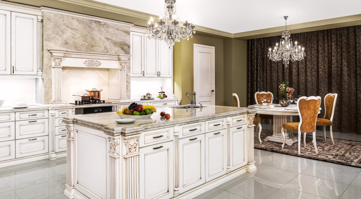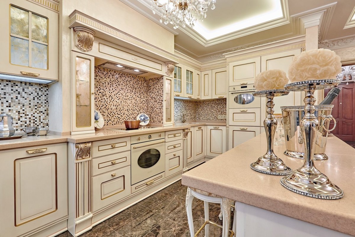 54. Кухня гостиная в классическом стиле в светлых тонах