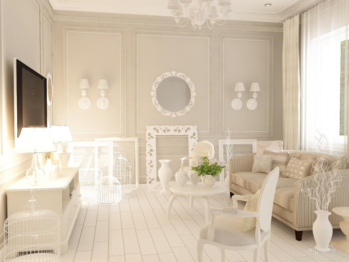 48. Цвет слоновой кости в интерьере гостиной