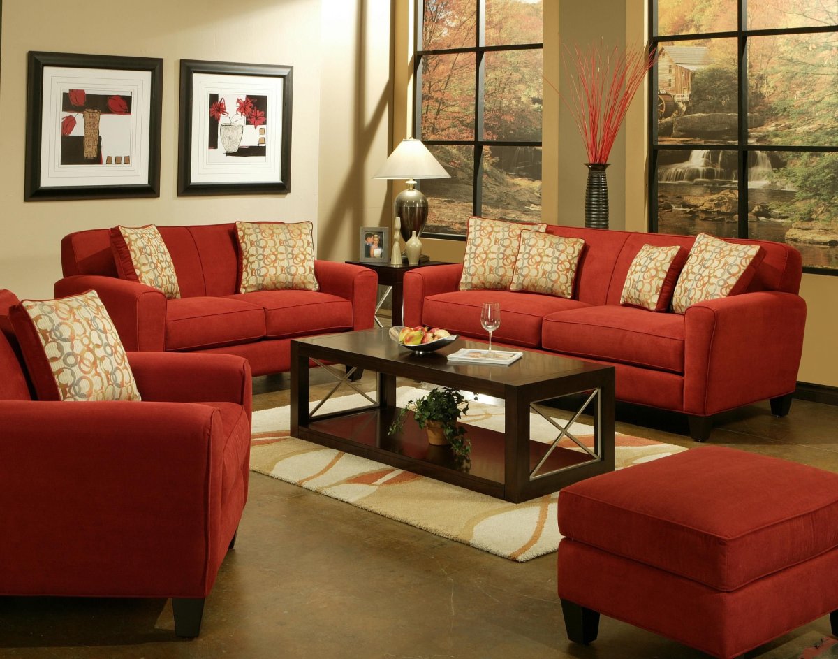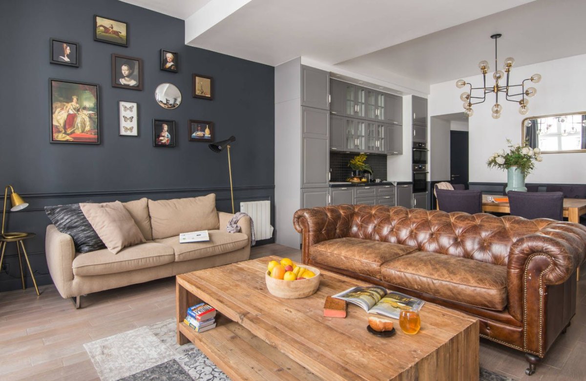 53. Гостиная в скандинавском стиле с терракотовым диваном