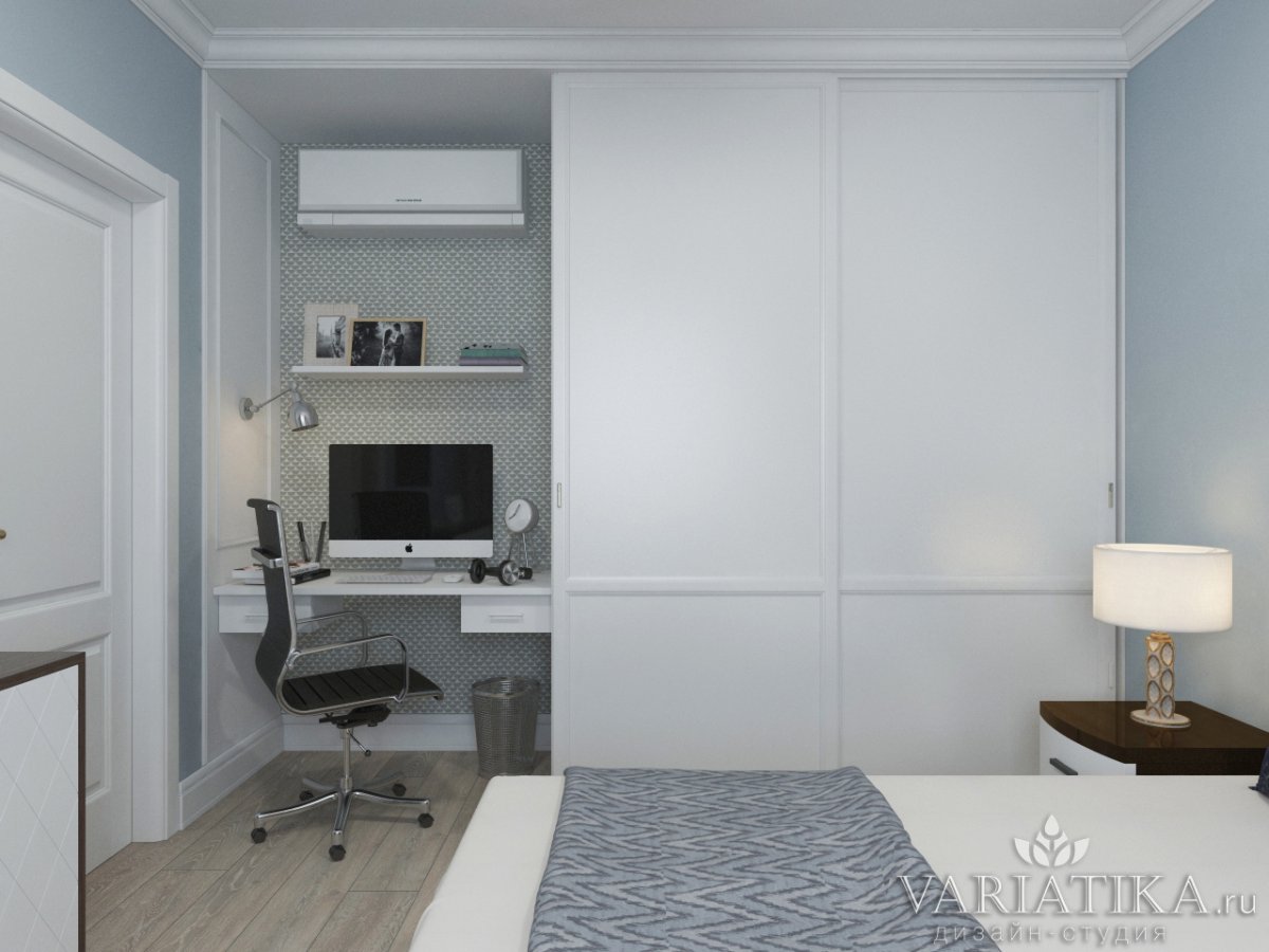 Фото: Встраиваемый шкаф купе в спальню с рабочей зоной