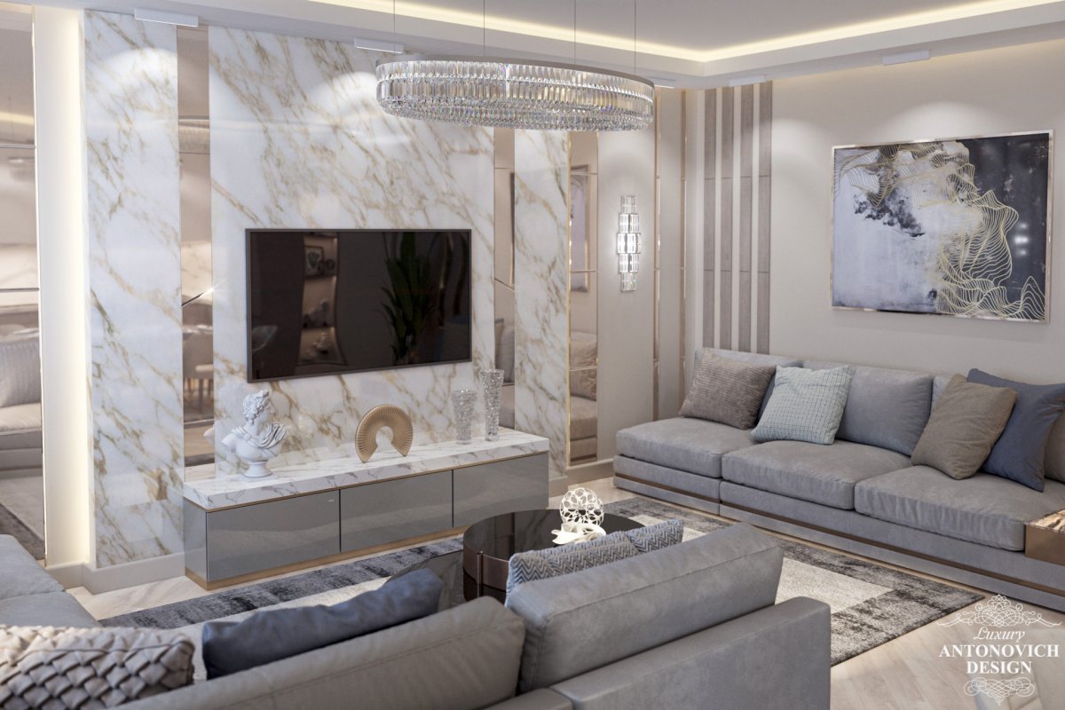 31. Зеркальная плитка в гостиной