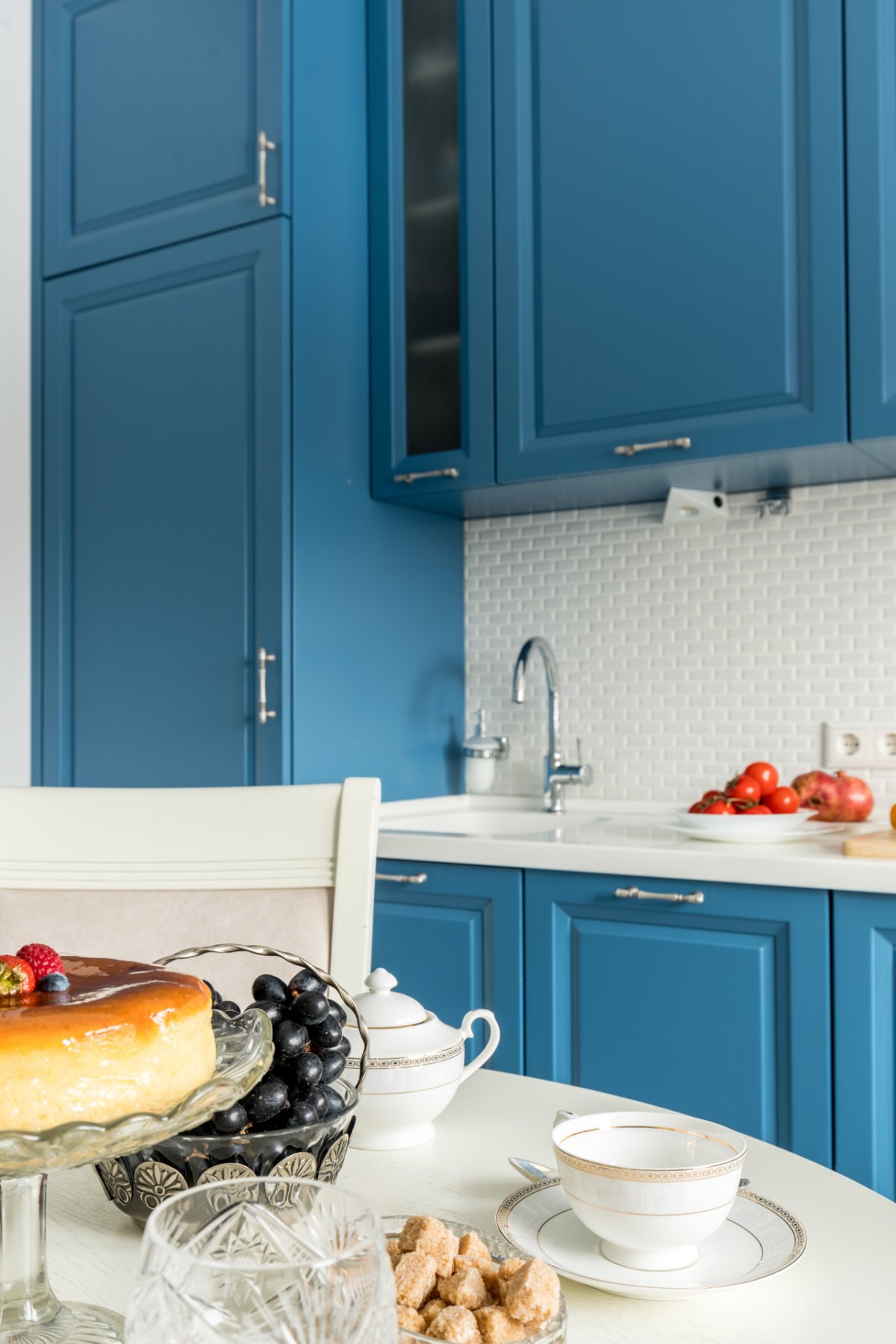 6. Белая кухня синие стены