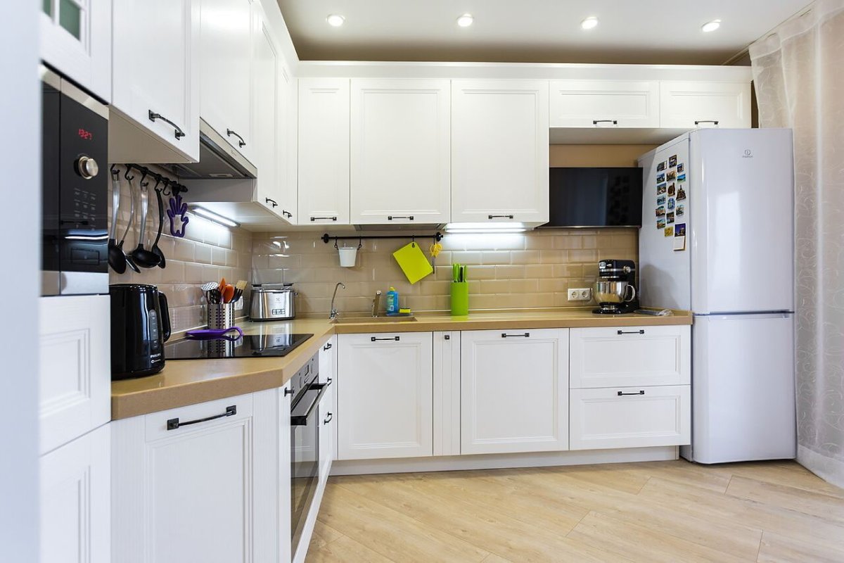 10. Угловая кухня с большим холодильником