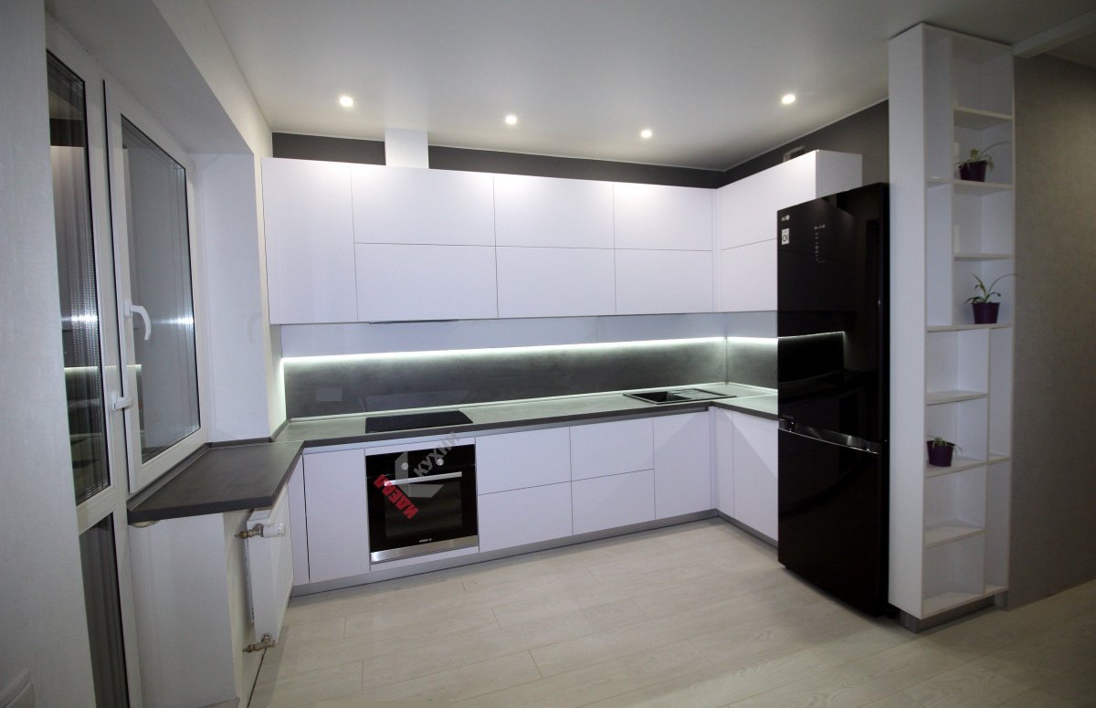 46. Кухни белые глянцевые угловые