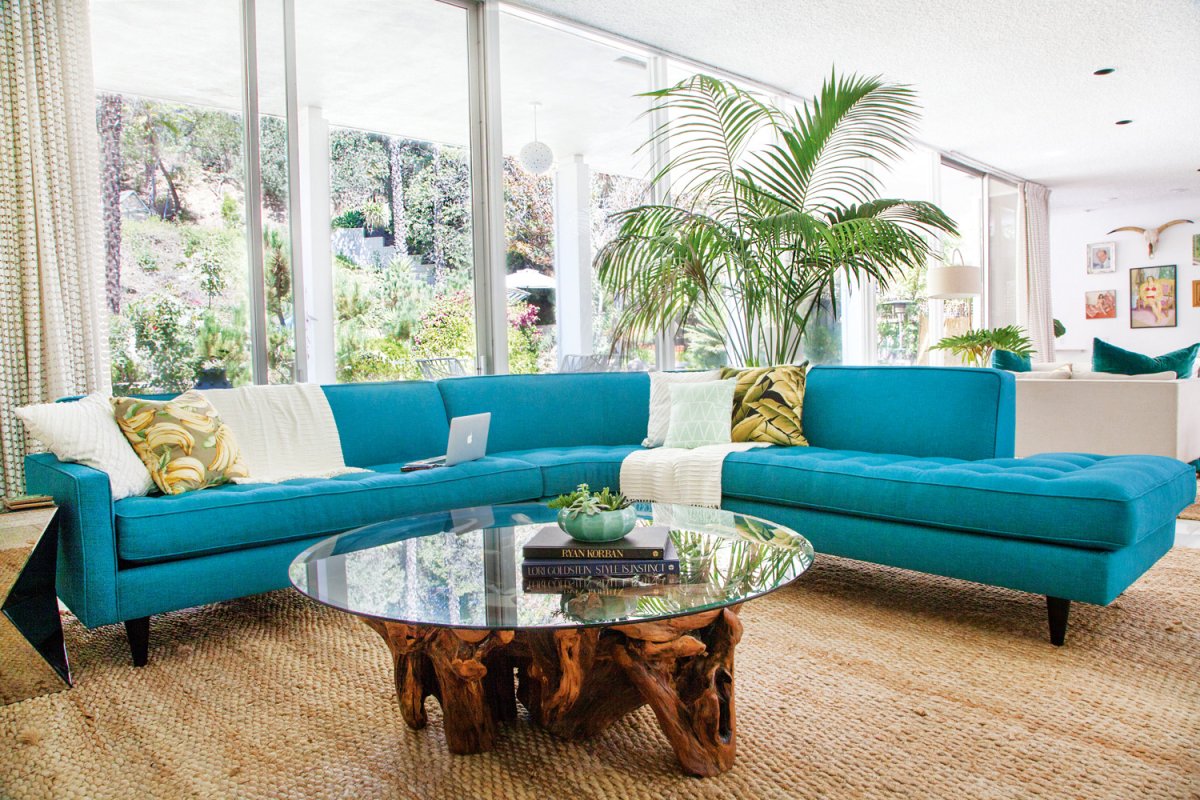 48. Бирюзовый диван в интерьере