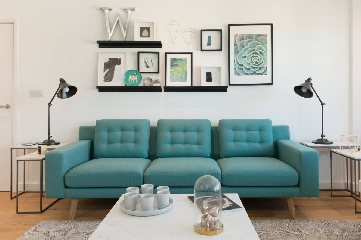 27. Диван цвета морской волны в интерьере