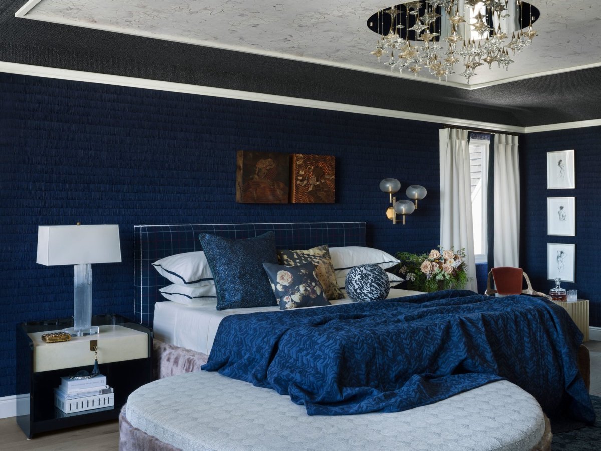 27. Спальня с темно синей мебелью