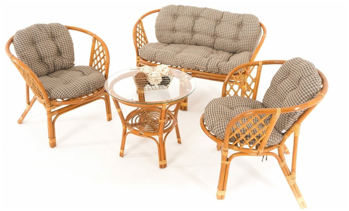 33. Комплект для отдыха Vinotti Багамы 01/16 New темный коньяк подушки клетка