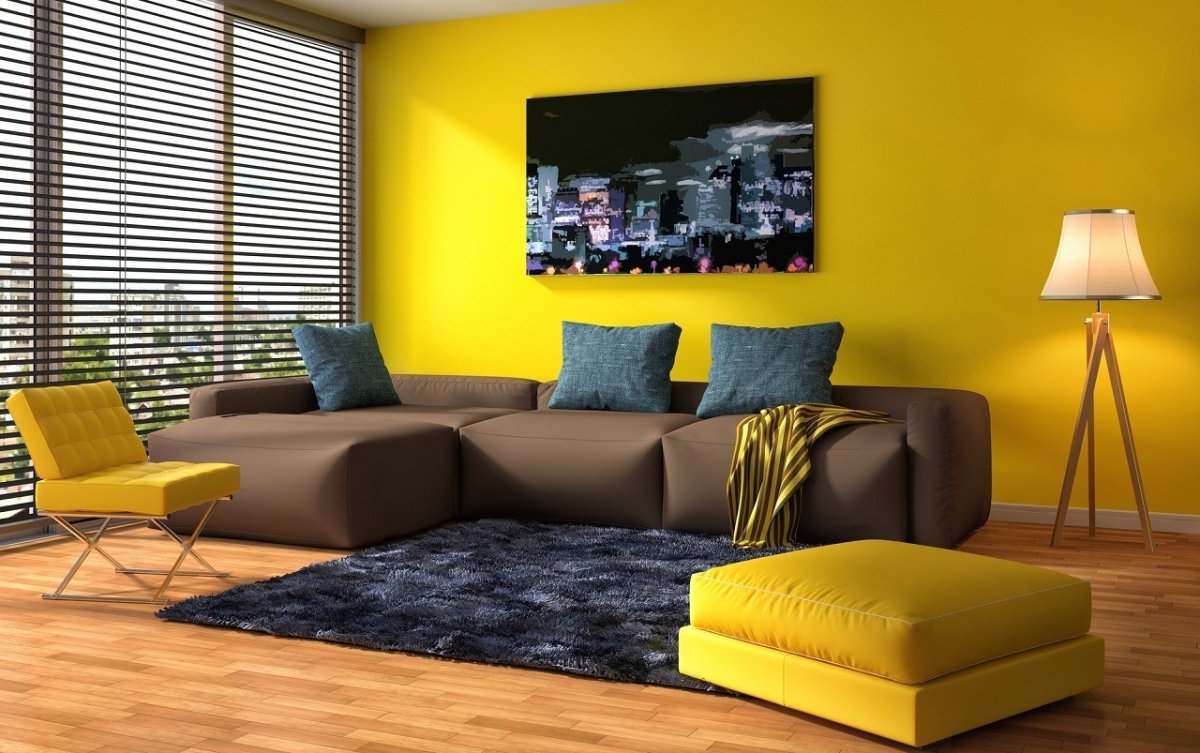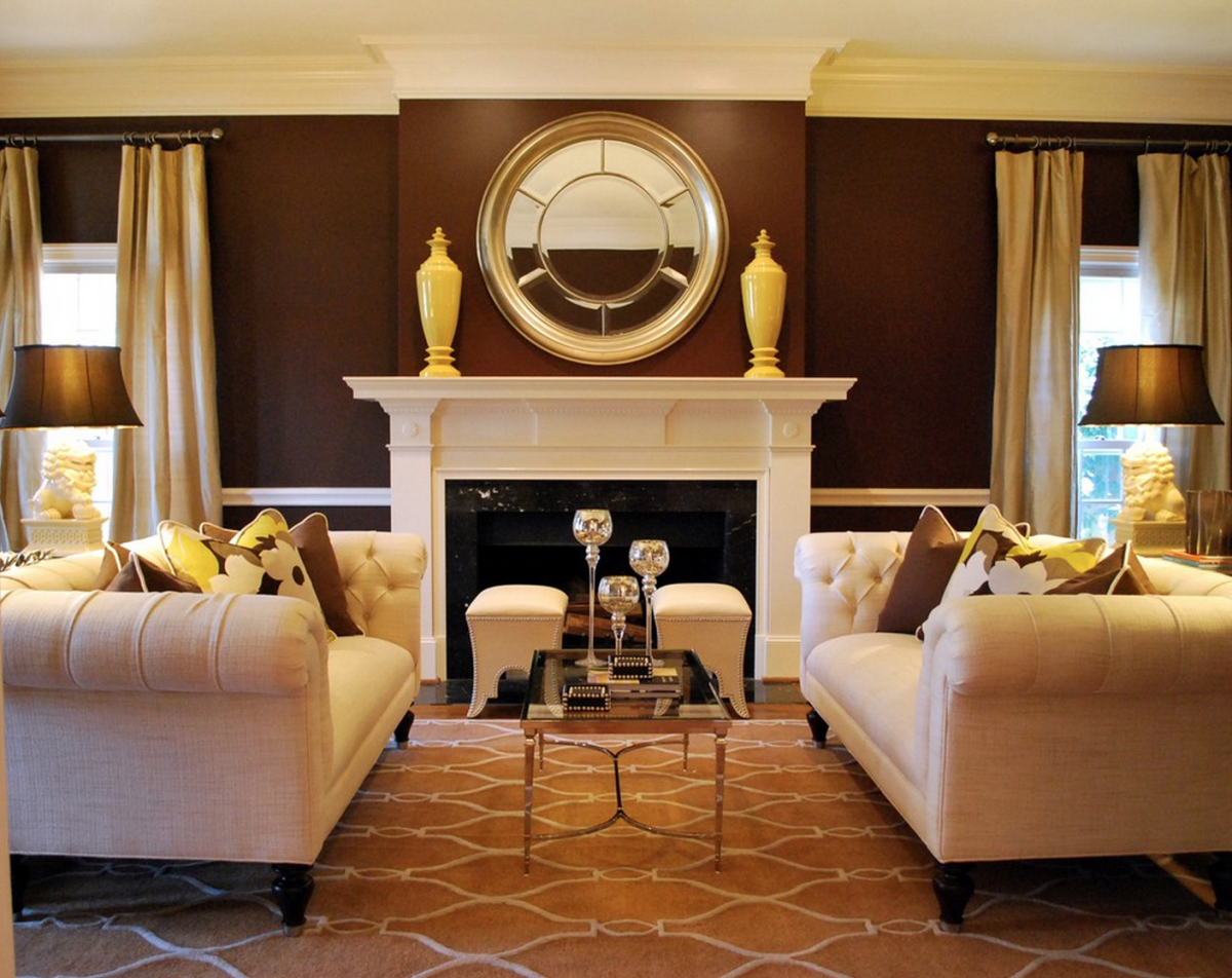 26. Современное стильное сочетание цветов в интерьере гостиной