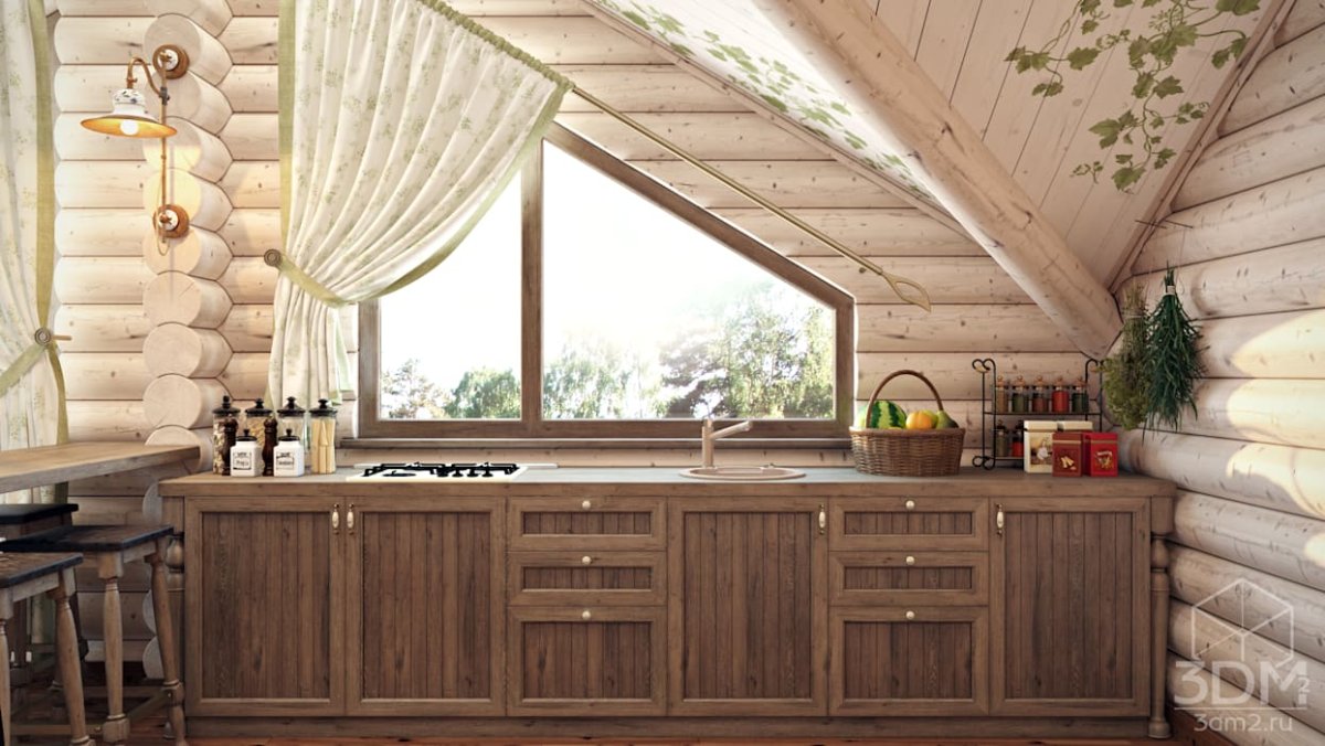 32. Варианты кухни в доме с рыжей вагонкой фото