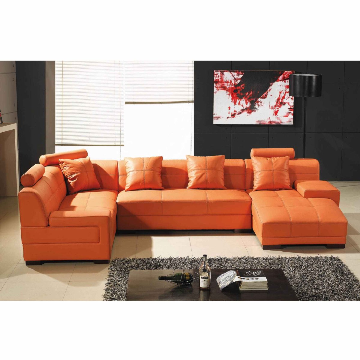 65. Угловой оранжевый диван в интерьере