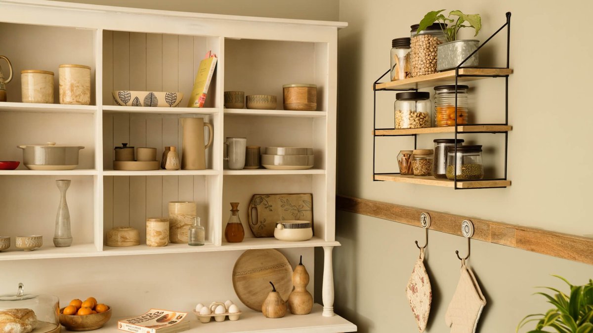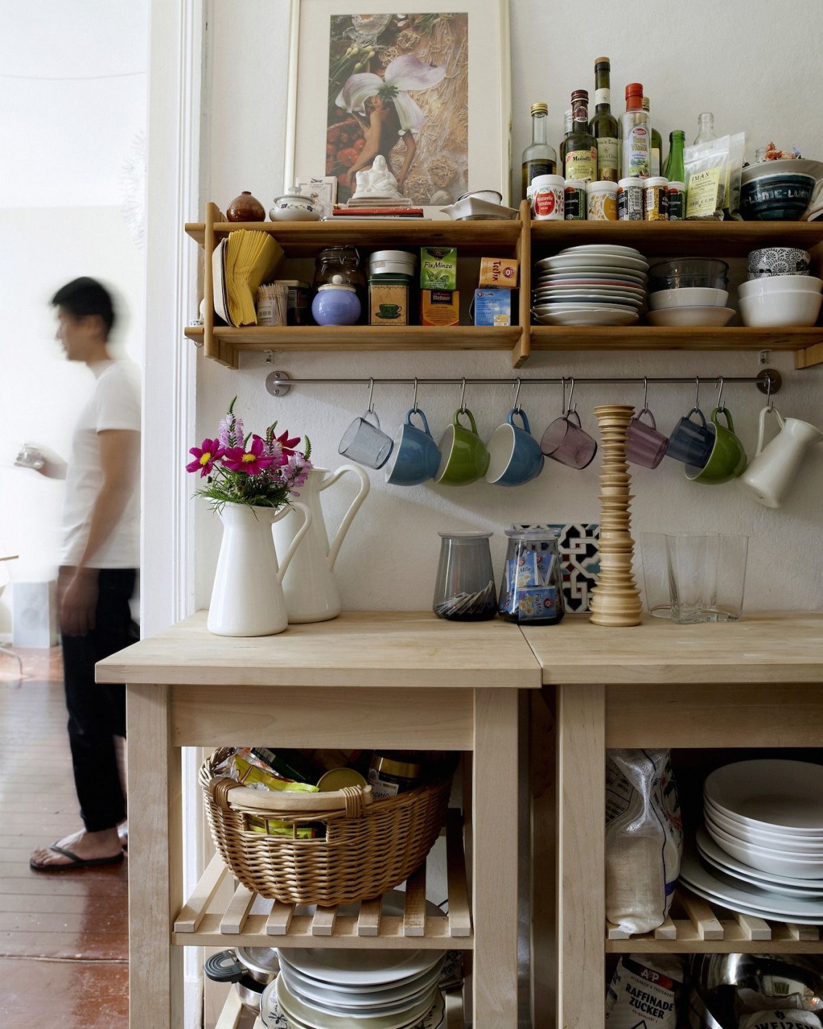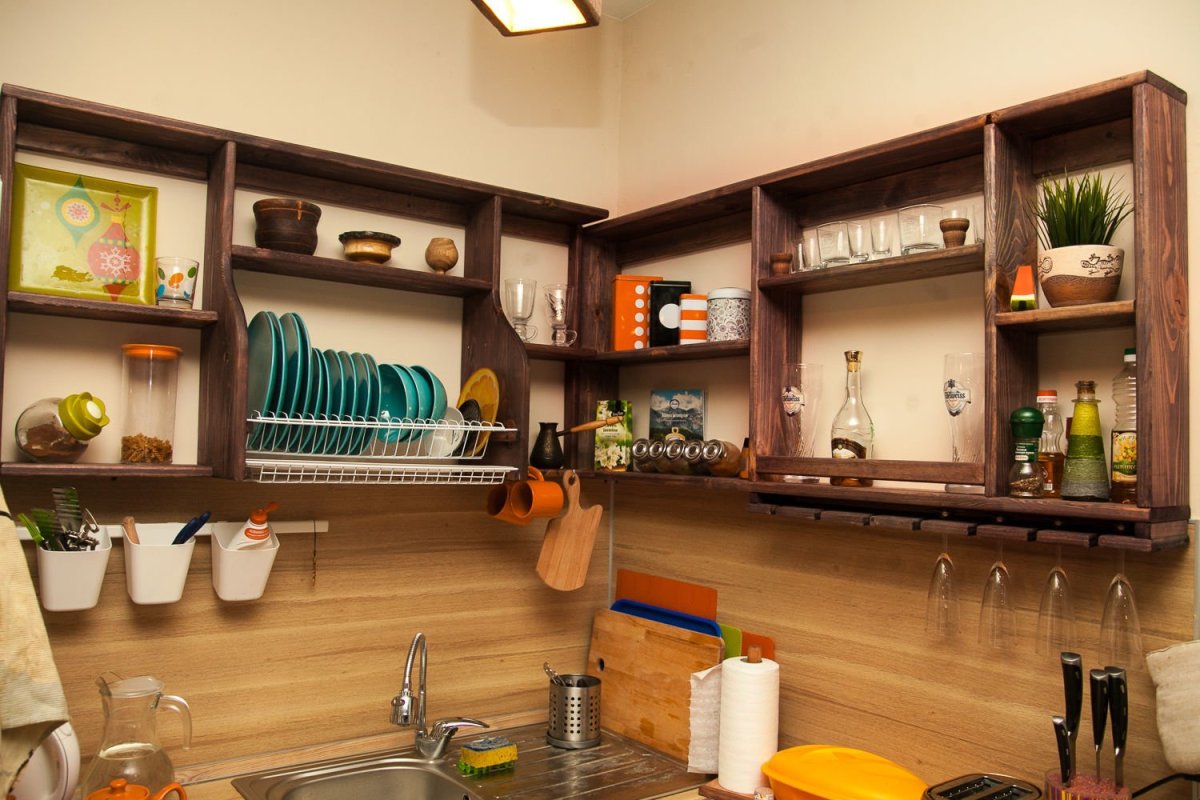 Фото: Без верхних шкафов кухни и полка со стаканами висящими вниз