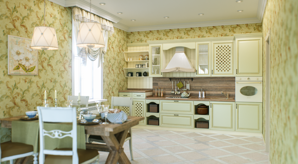 Фото: Фисташковая кухня в стиле Прованс