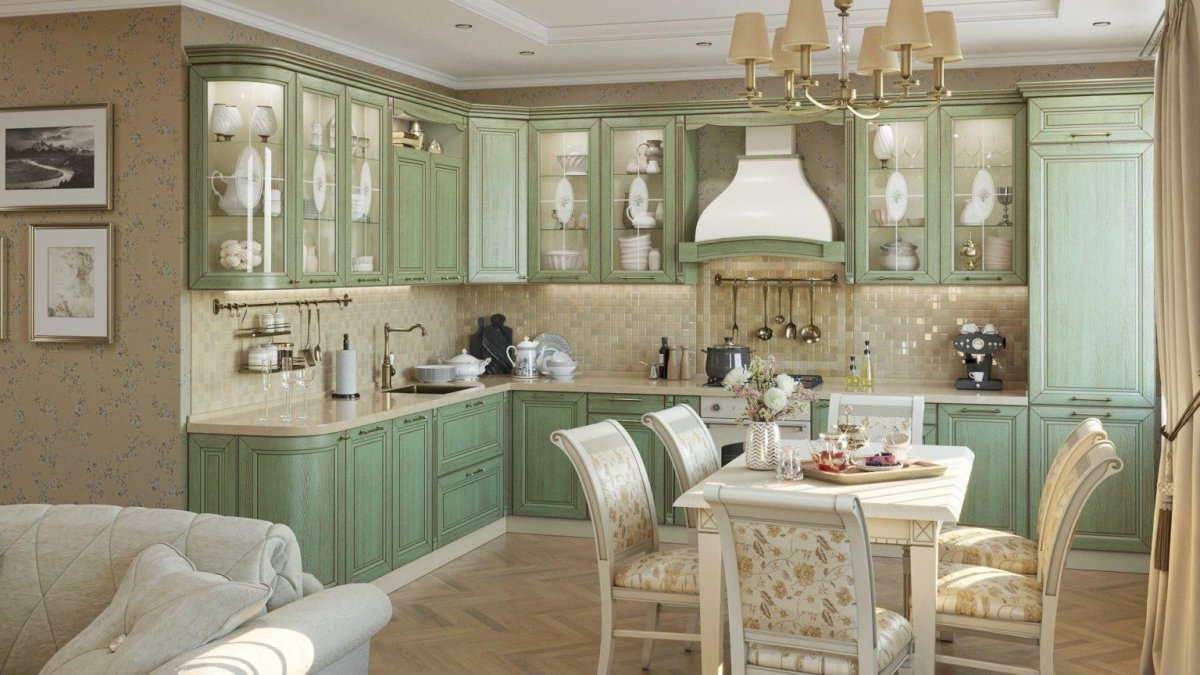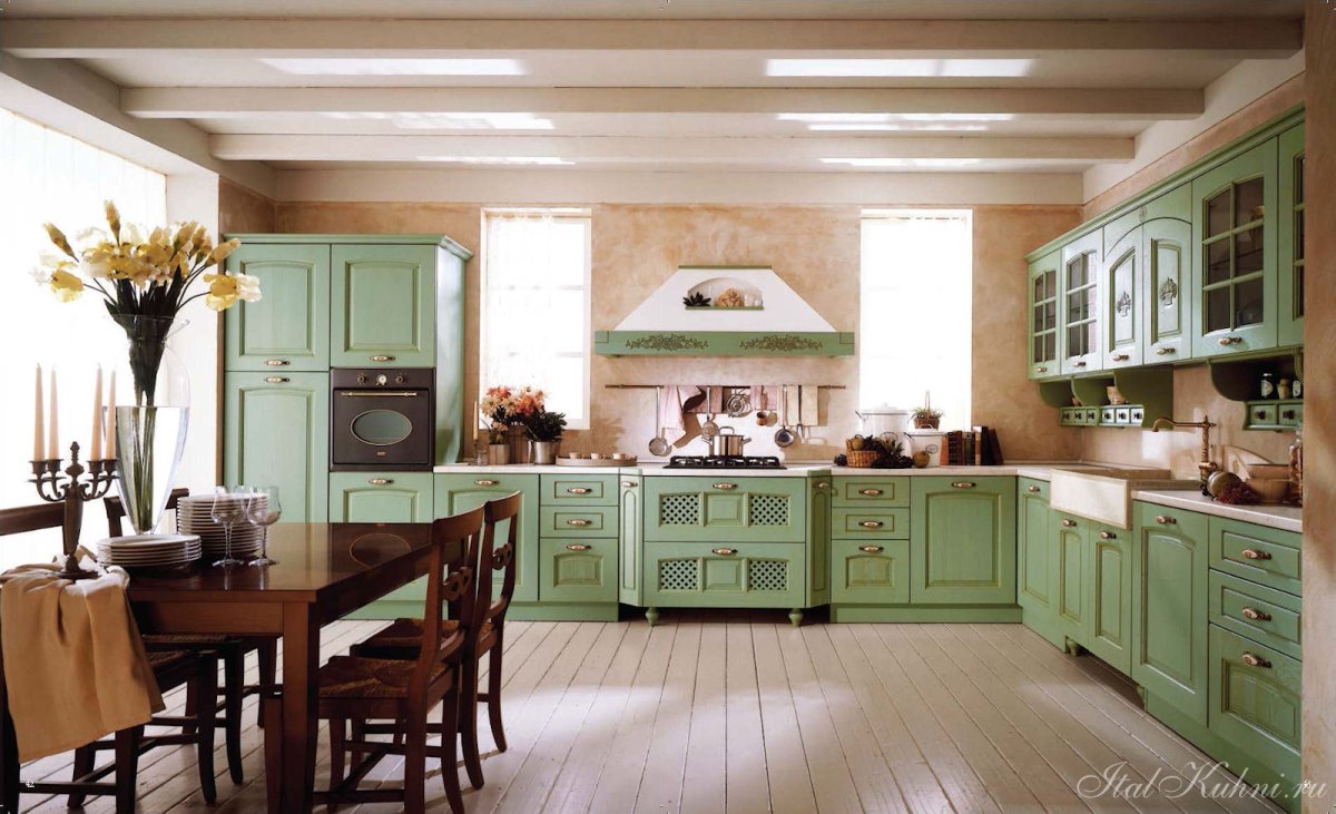 Фото: Кухня Прованс с фисташковыми стенами