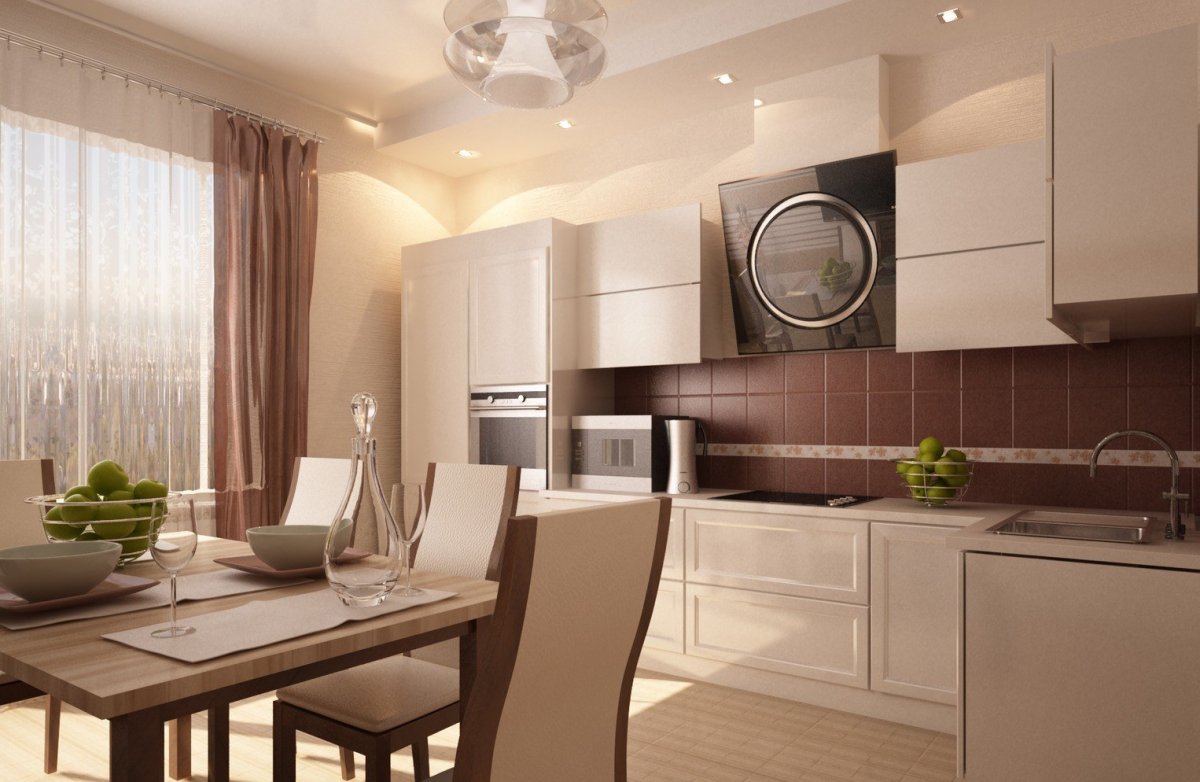 15. Интерьер кухни в коричнево-бежевых тонах